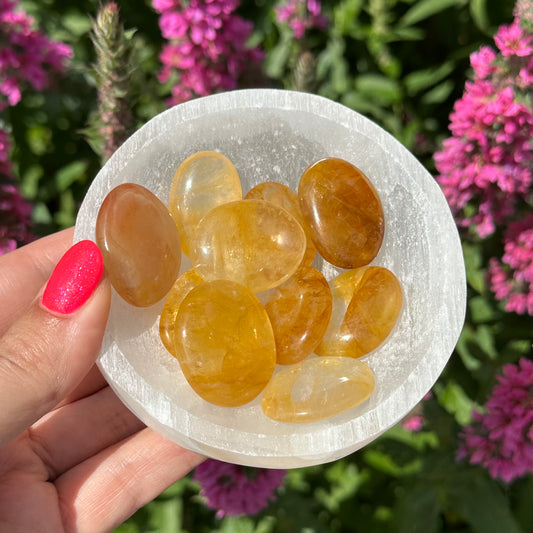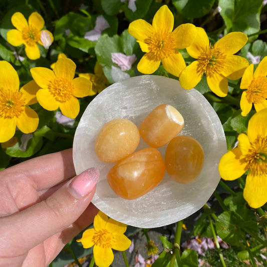 Oranje calciet trommelsteen L