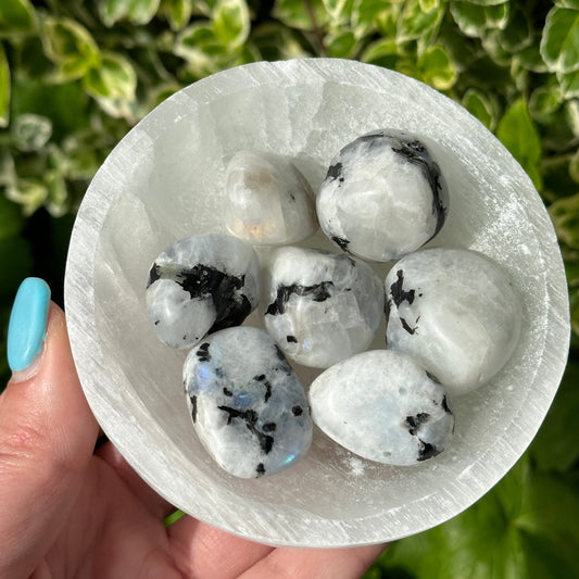 Regenboog maansteen trommelsteen S