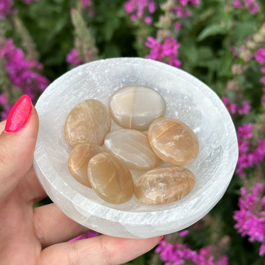 Perzik maansteen trommelsteen S