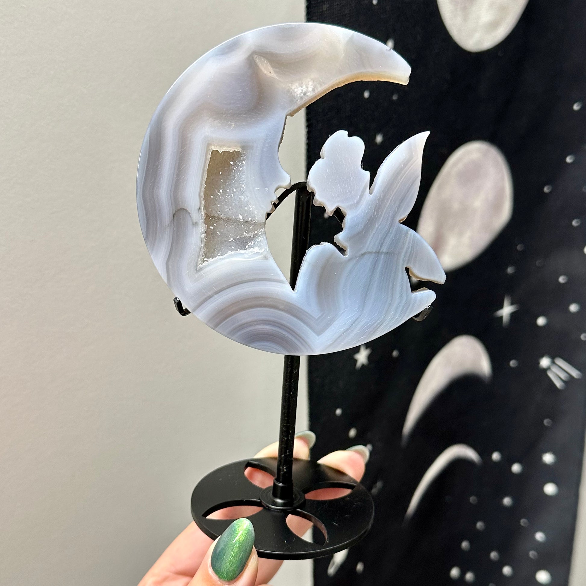 Agaat elf op maan inclusief standaard.