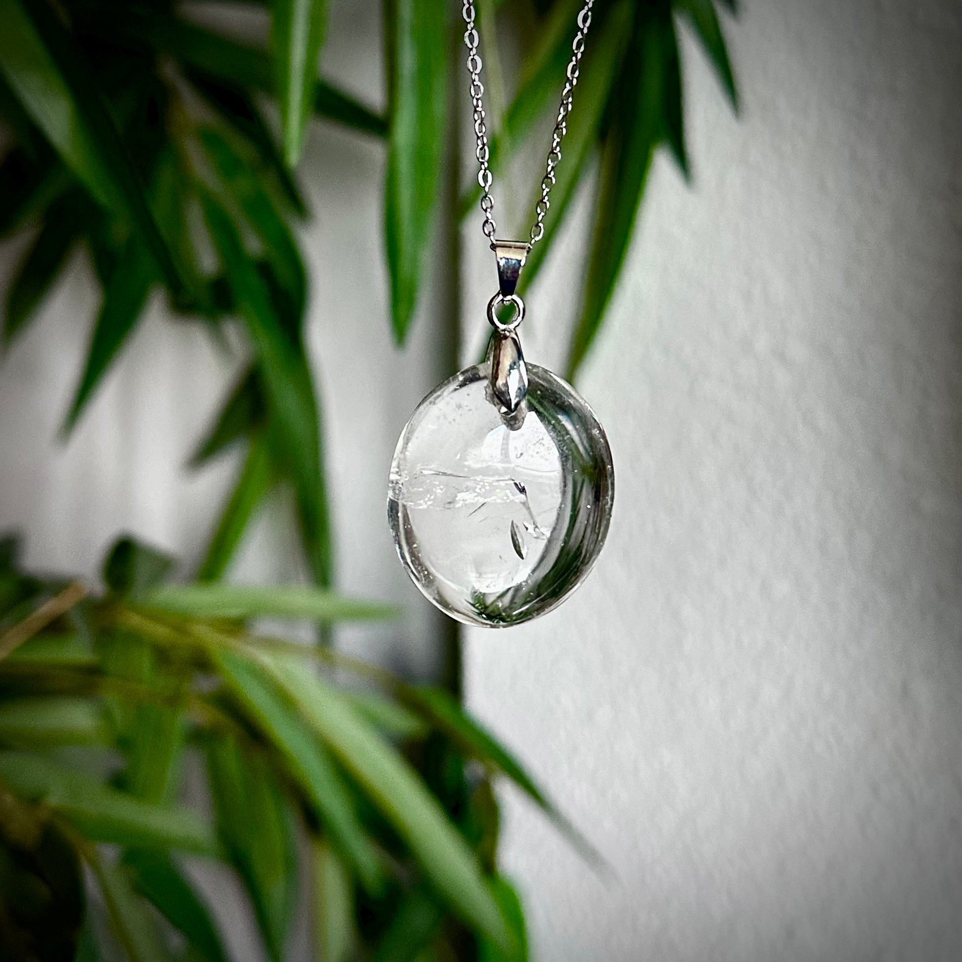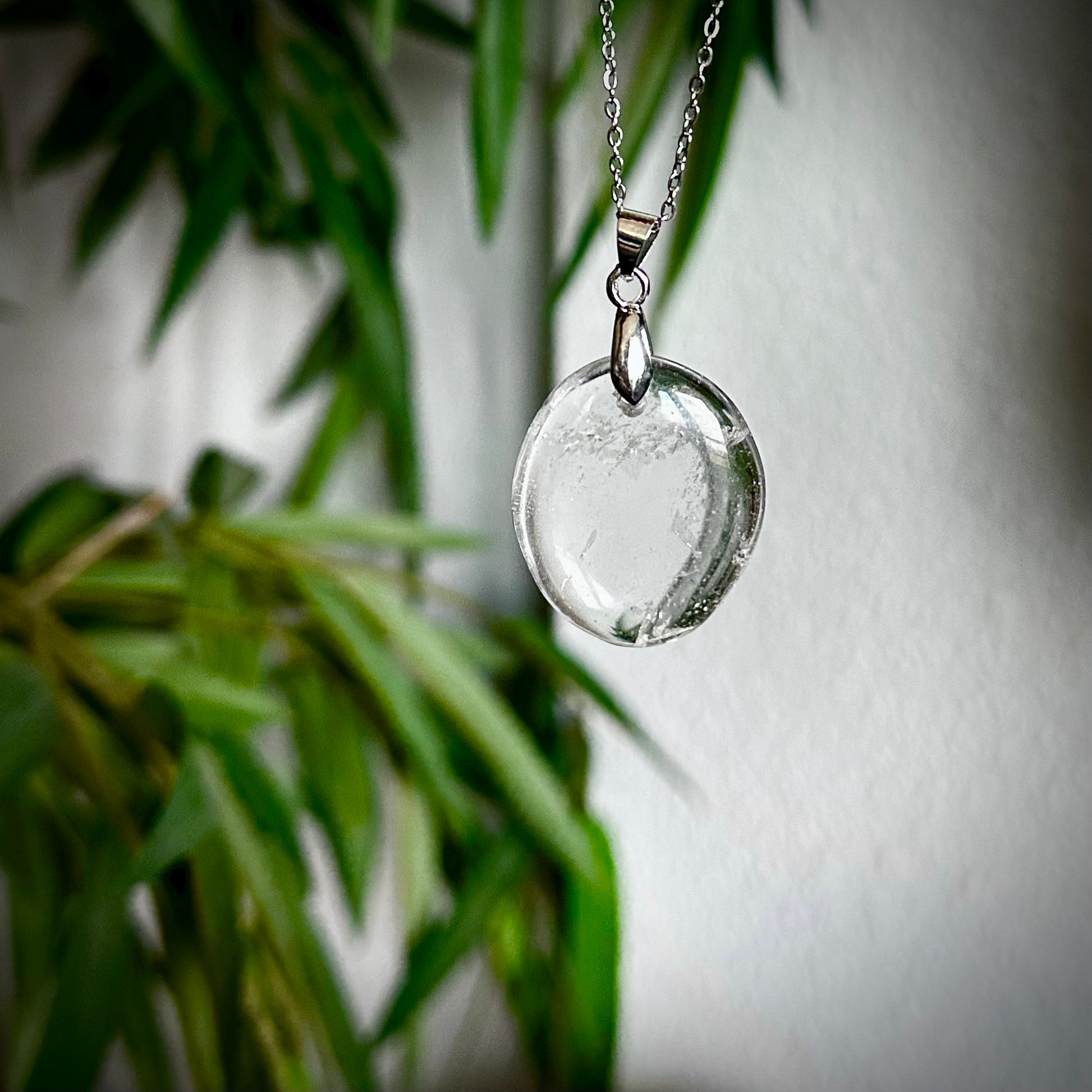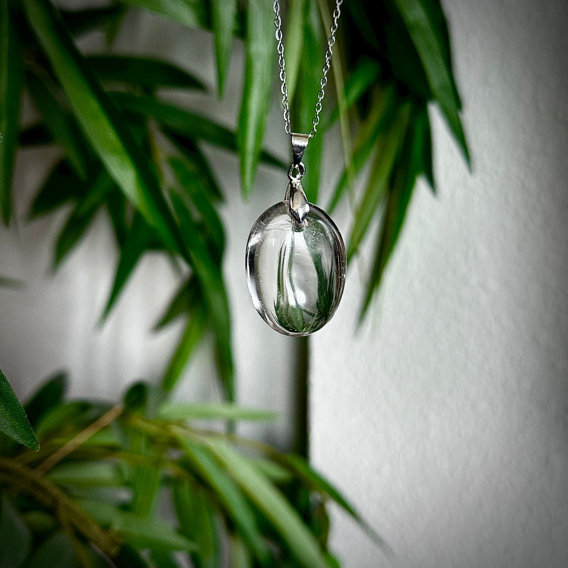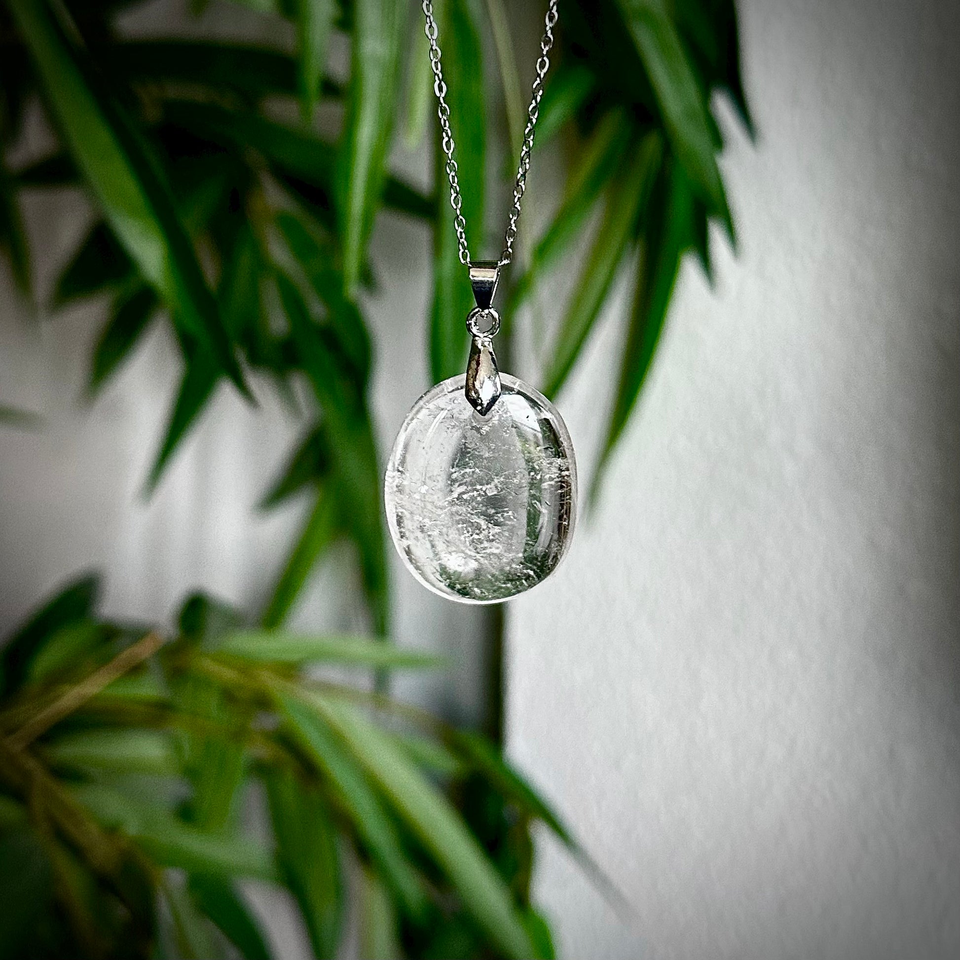 Bergkristal kettinghangers met een zilverkleurig hangertje.