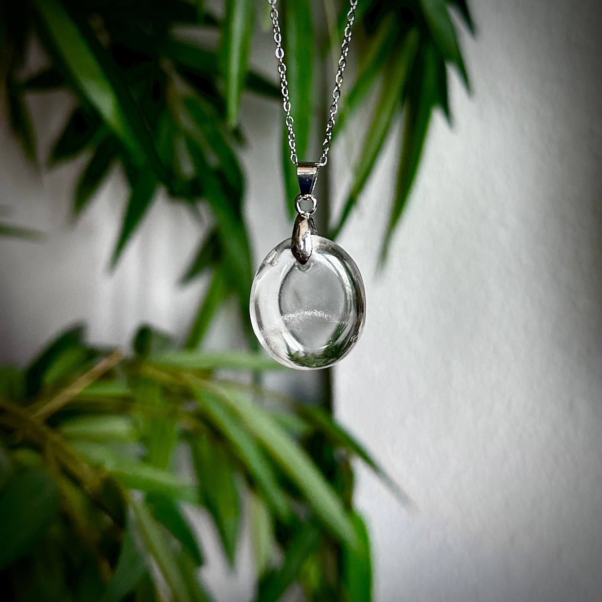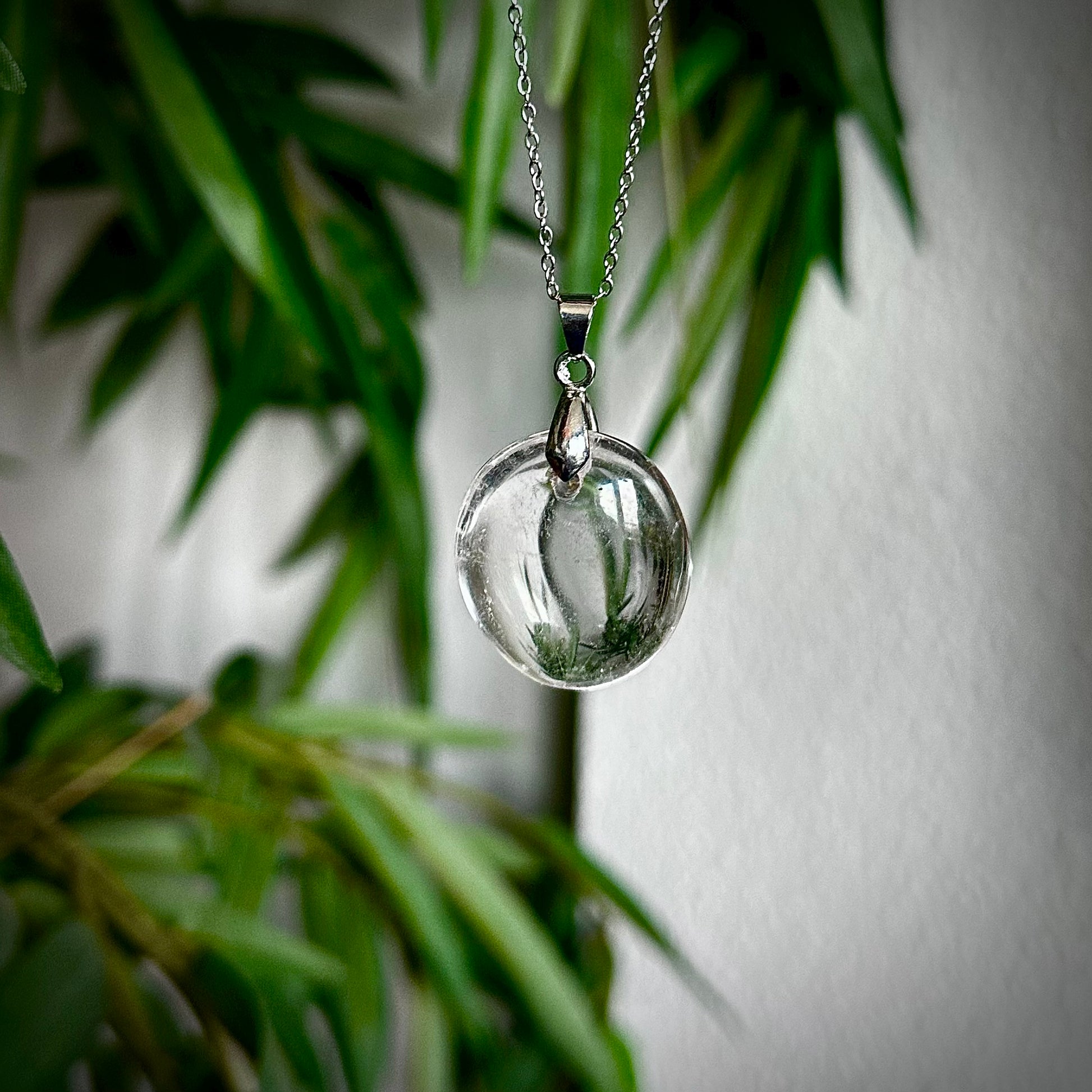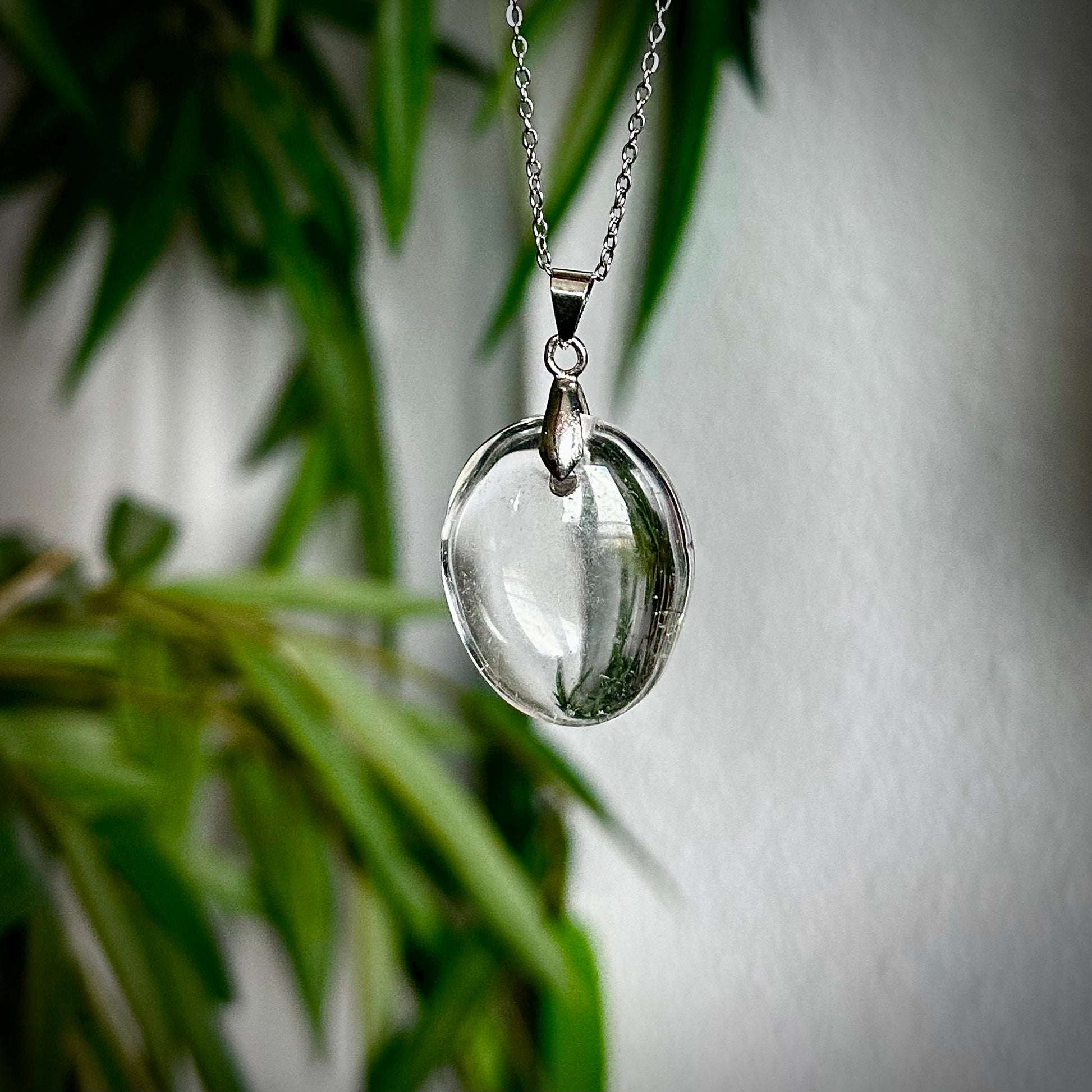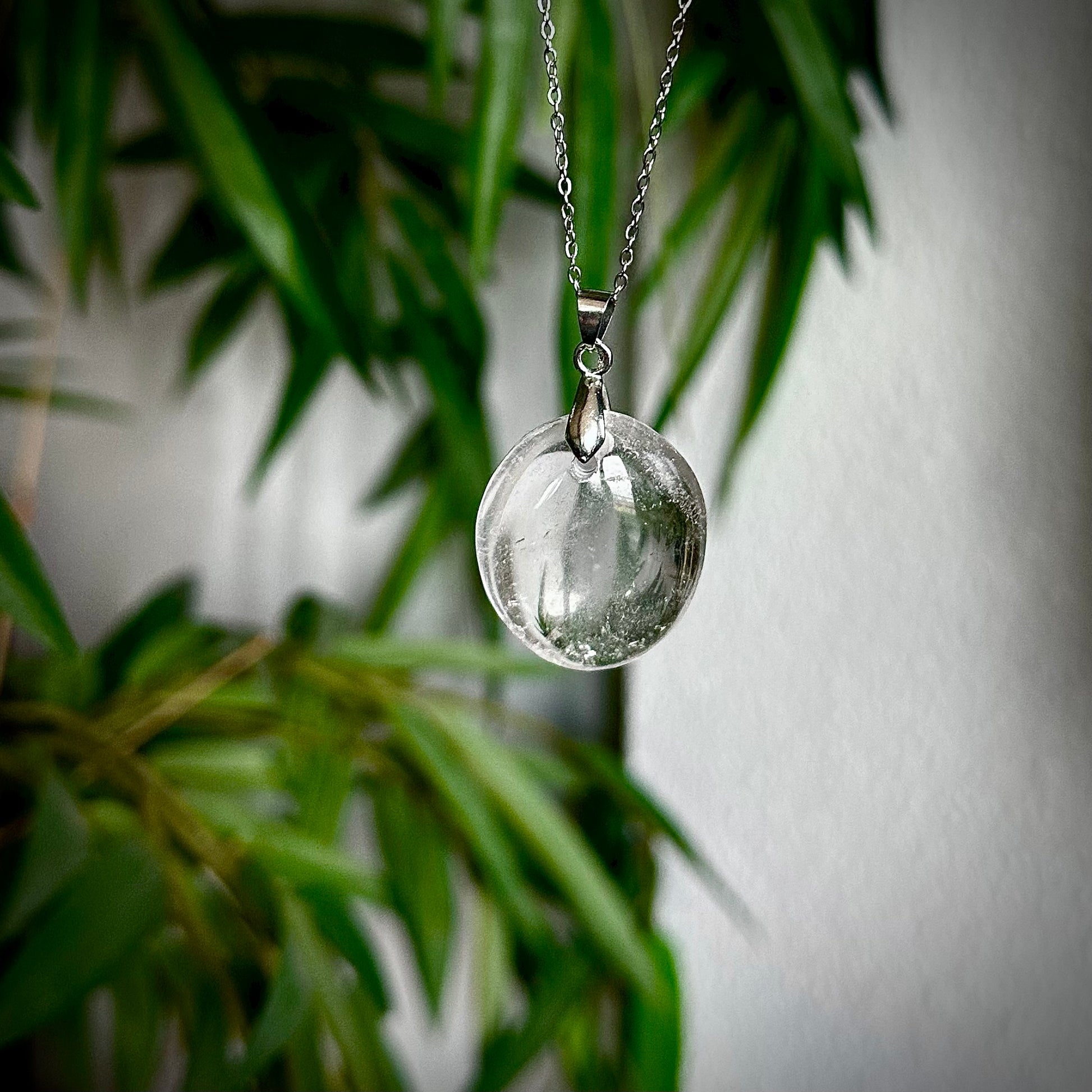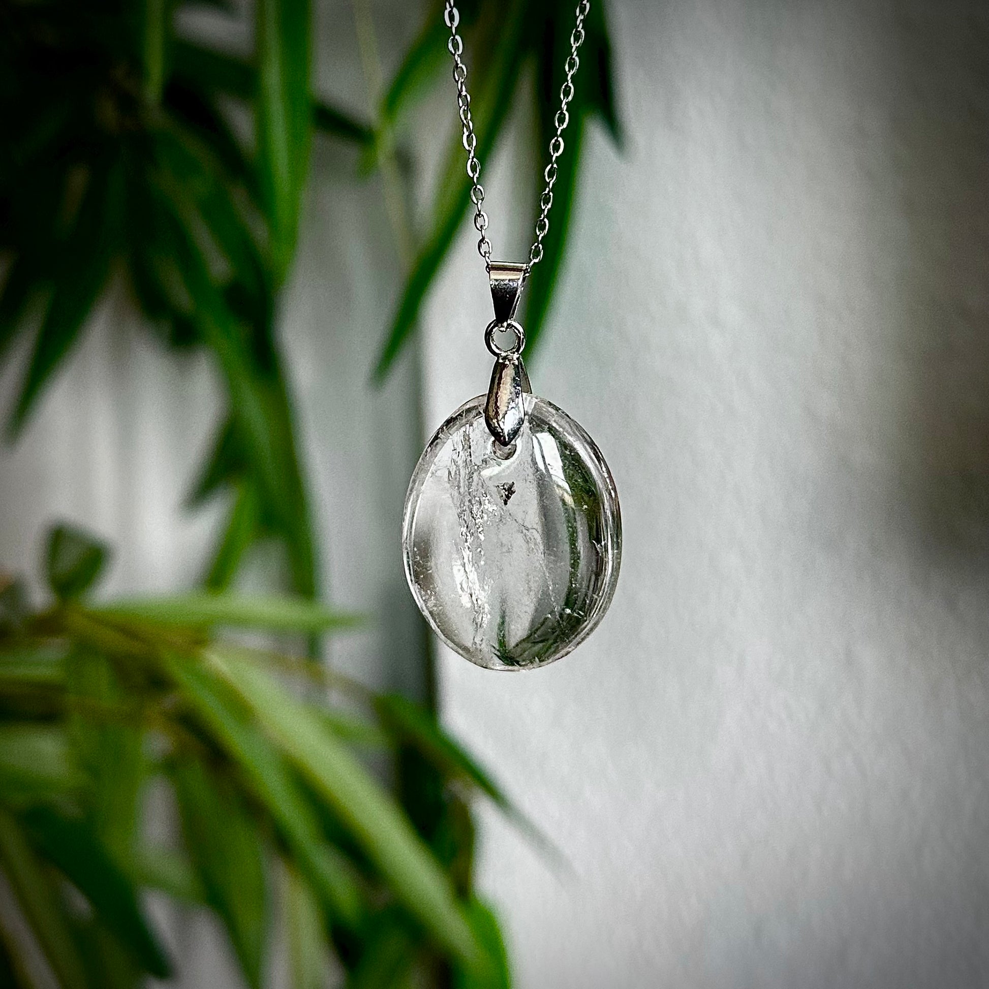 Bergkristal kettinghangers met een zilverkleurig hangertje.