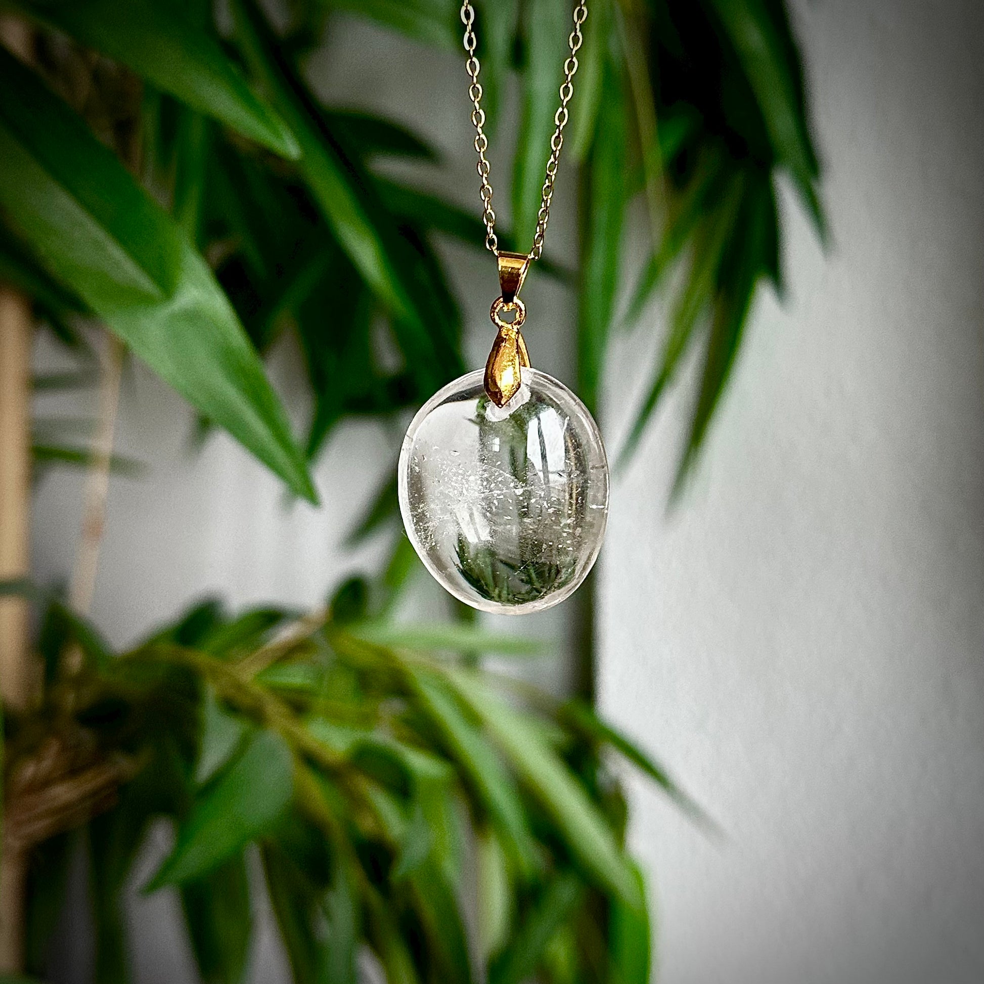 Bergkristal kettinghangers met een goudkleurig hangertje.