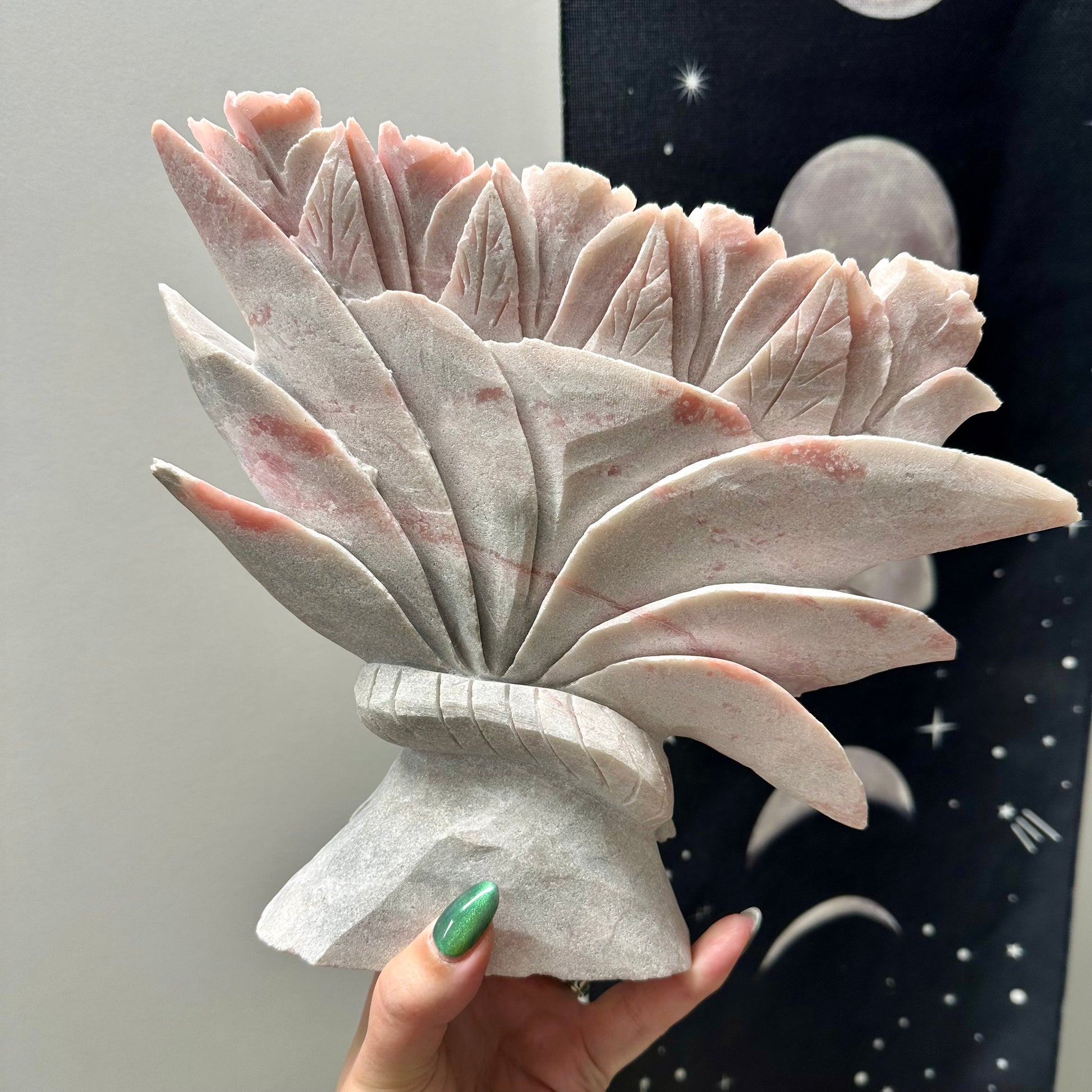 De rozenkwarts variant is verkocht. De eerste foto is slechts een voorbeeld van de grootte. Je ontvangt de variant van roze Andes opaal.
