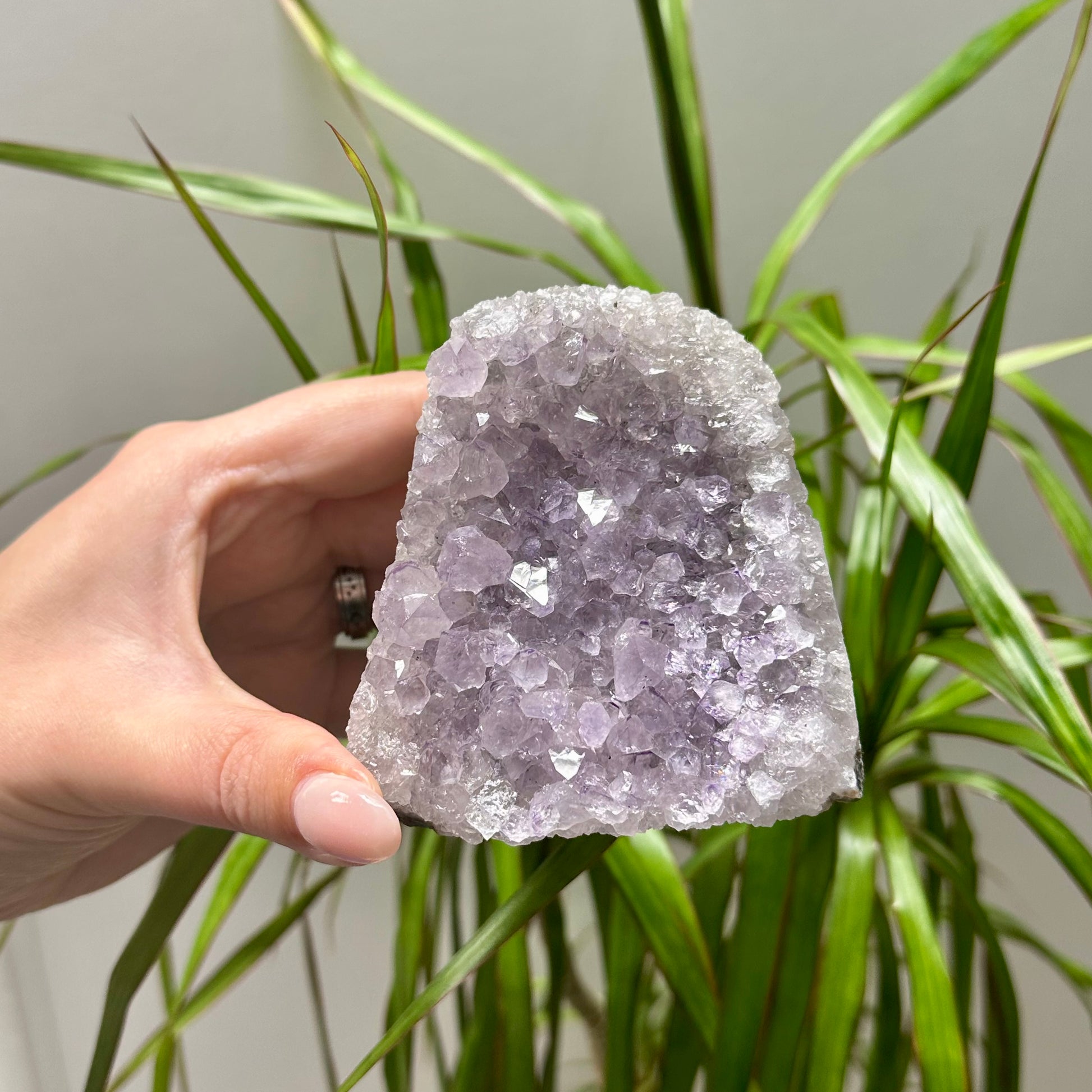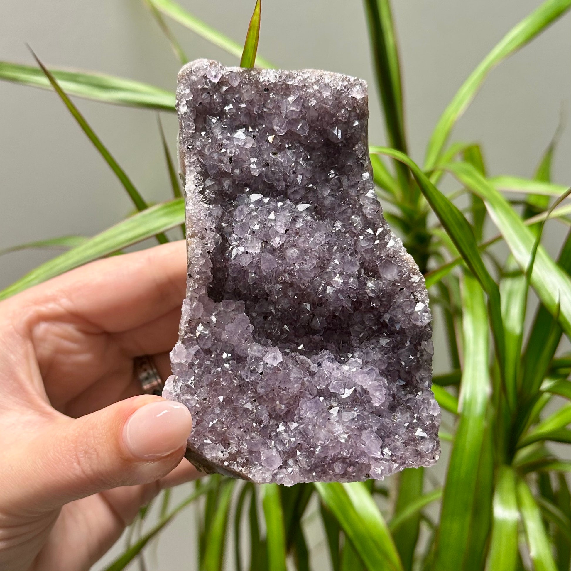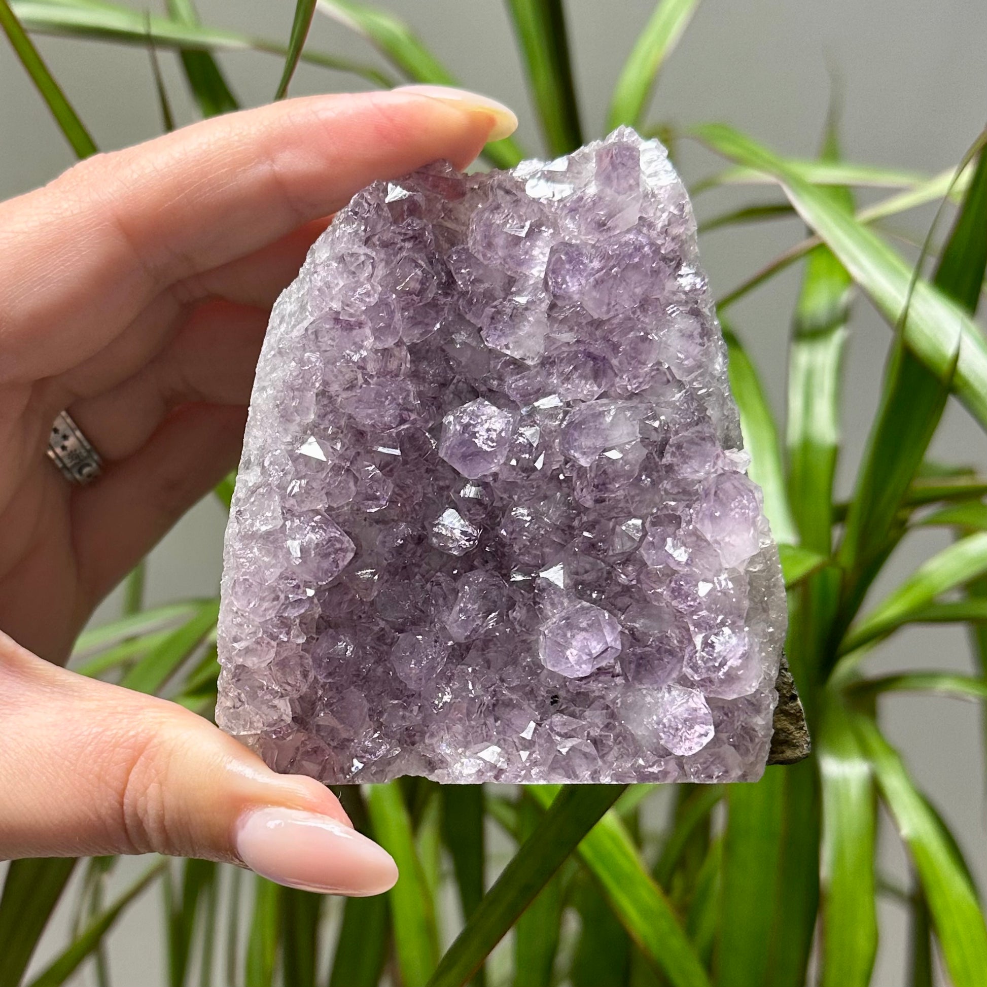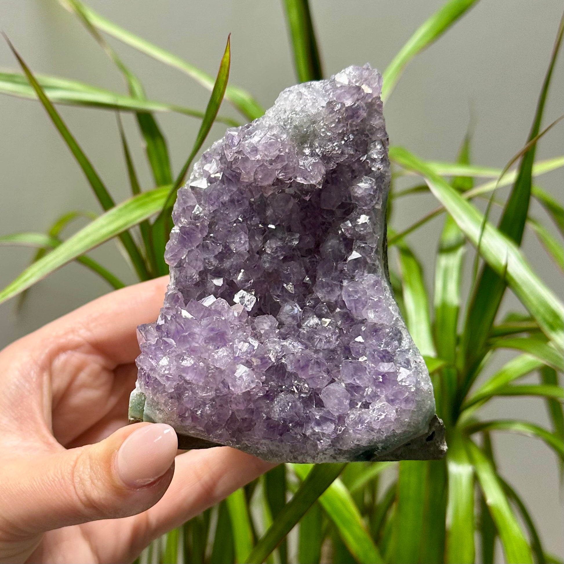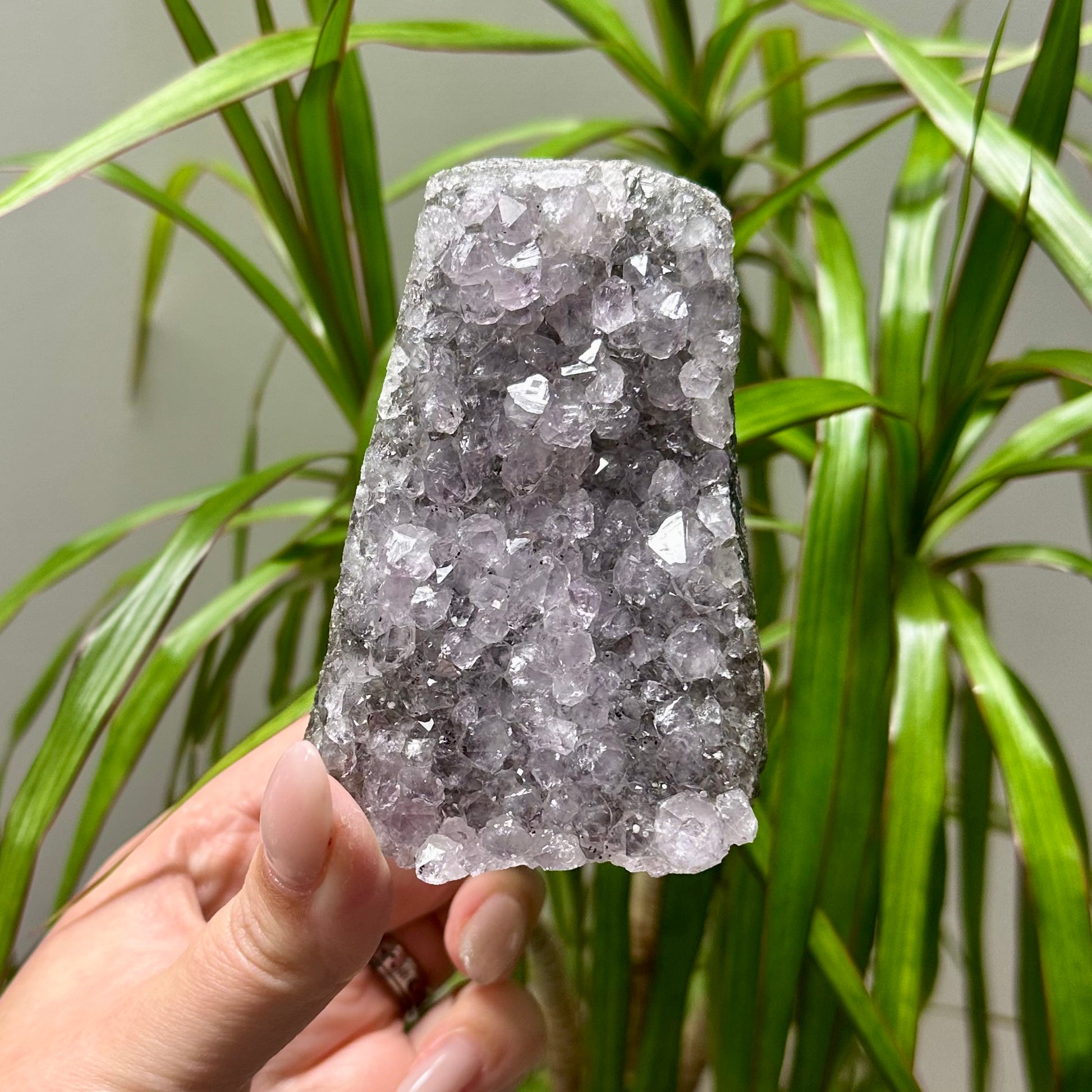 Prachtige amethist clusters op standvlak (dus zelfstaand).