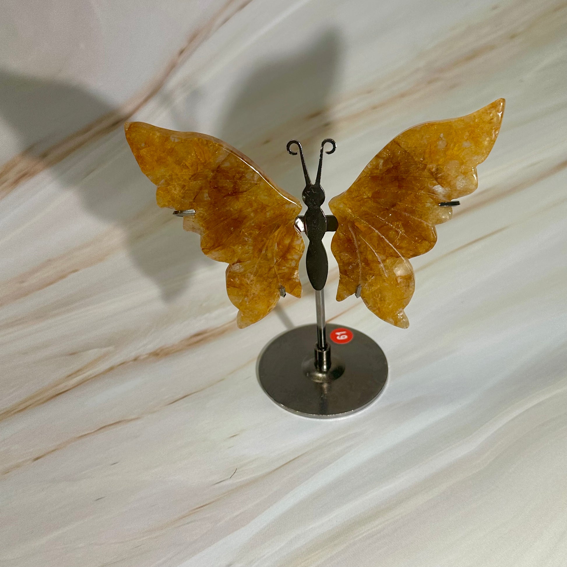 Golden healer (limoniet kwarts) vlinders op standaard.
