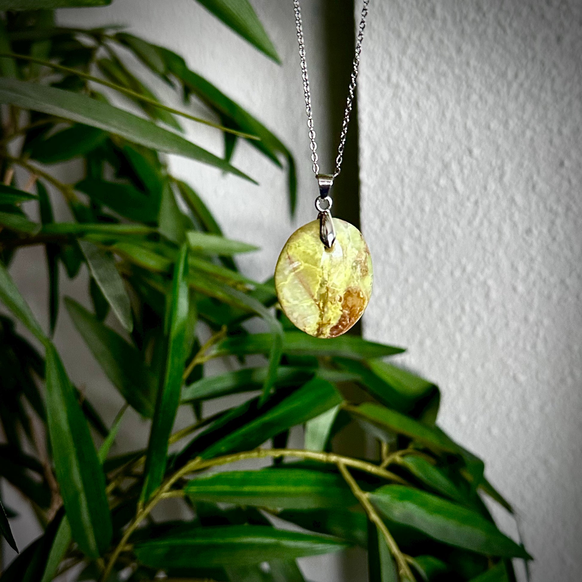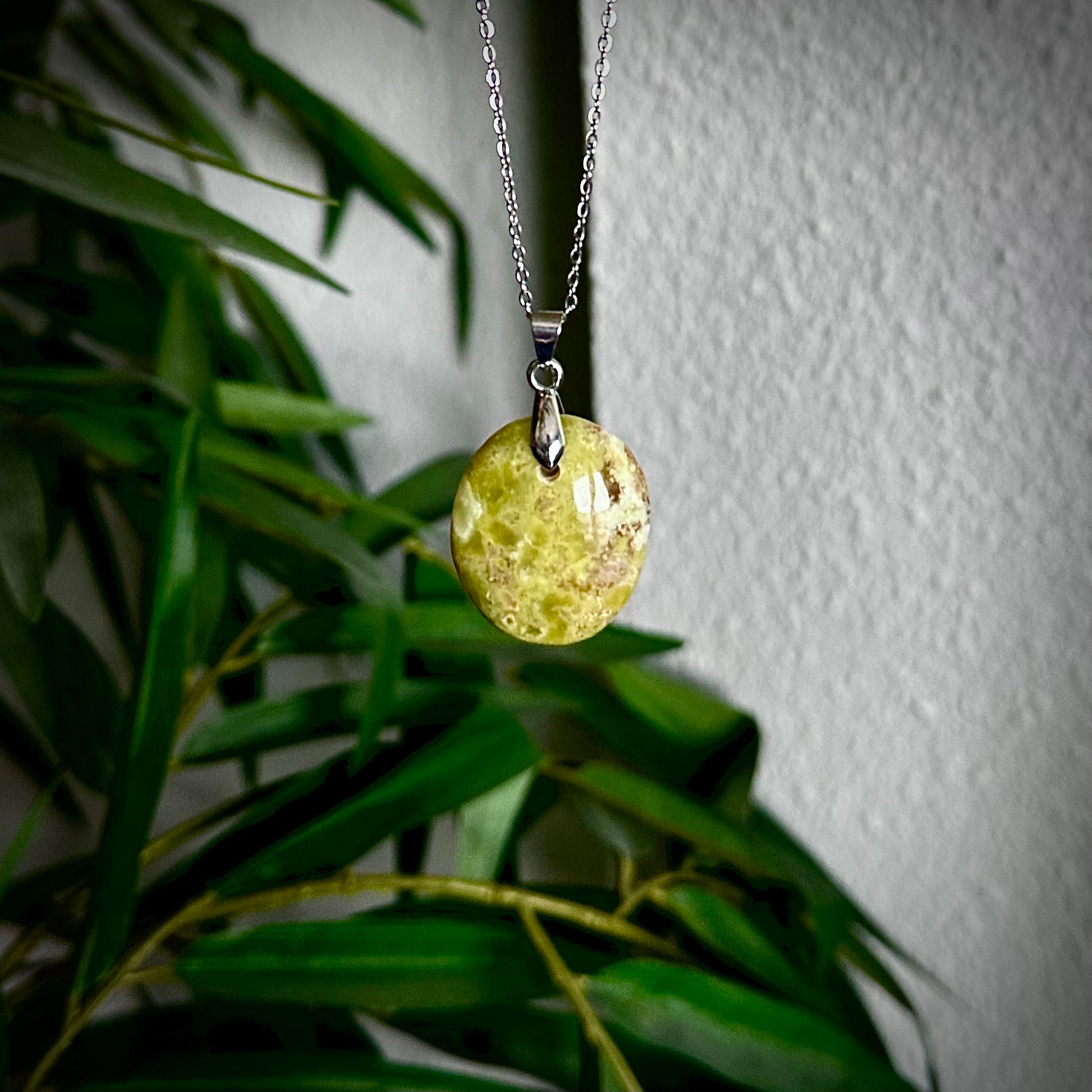 Groene opaal kettinghangers met een goudkleurig hangertje.
