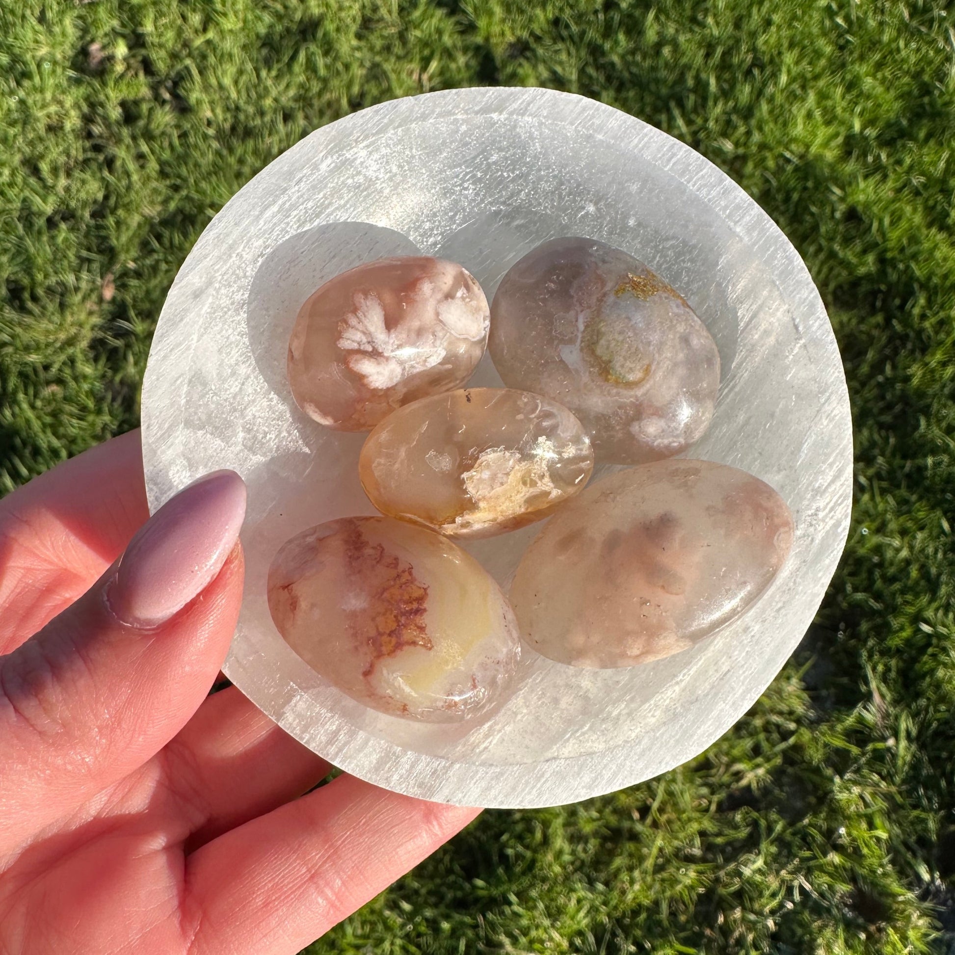 Bloemagaat is een kwartssoort met ondoorzichtige chalcedooninsluitsels die zorgen voor het ‘’bloemeffect’’.