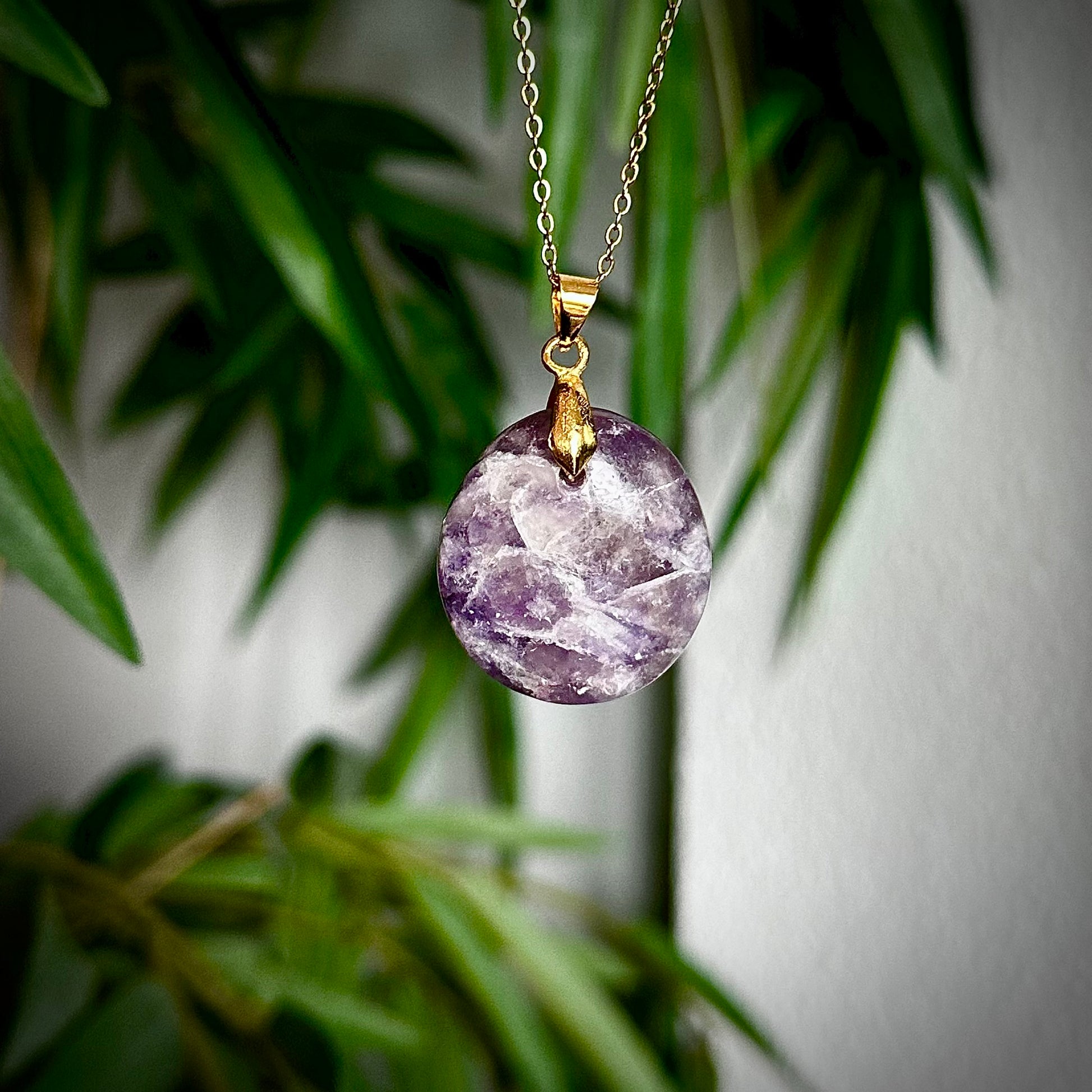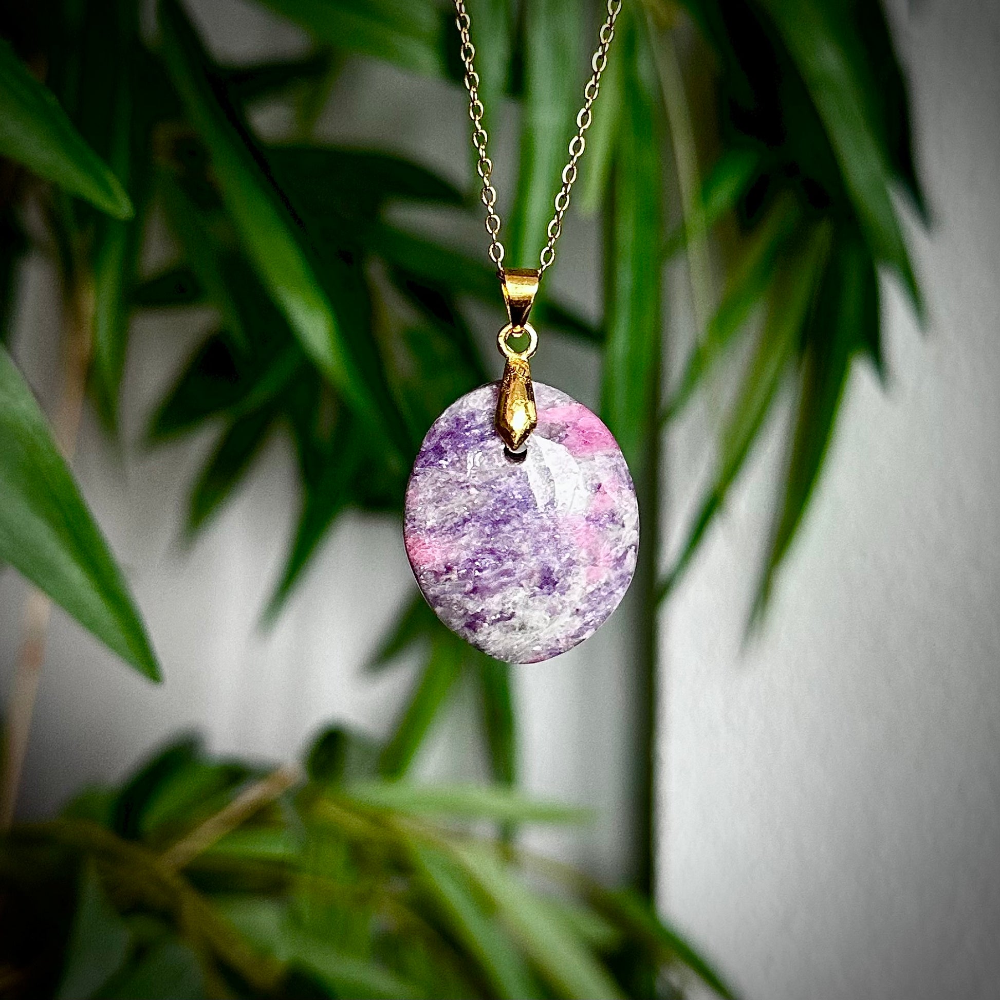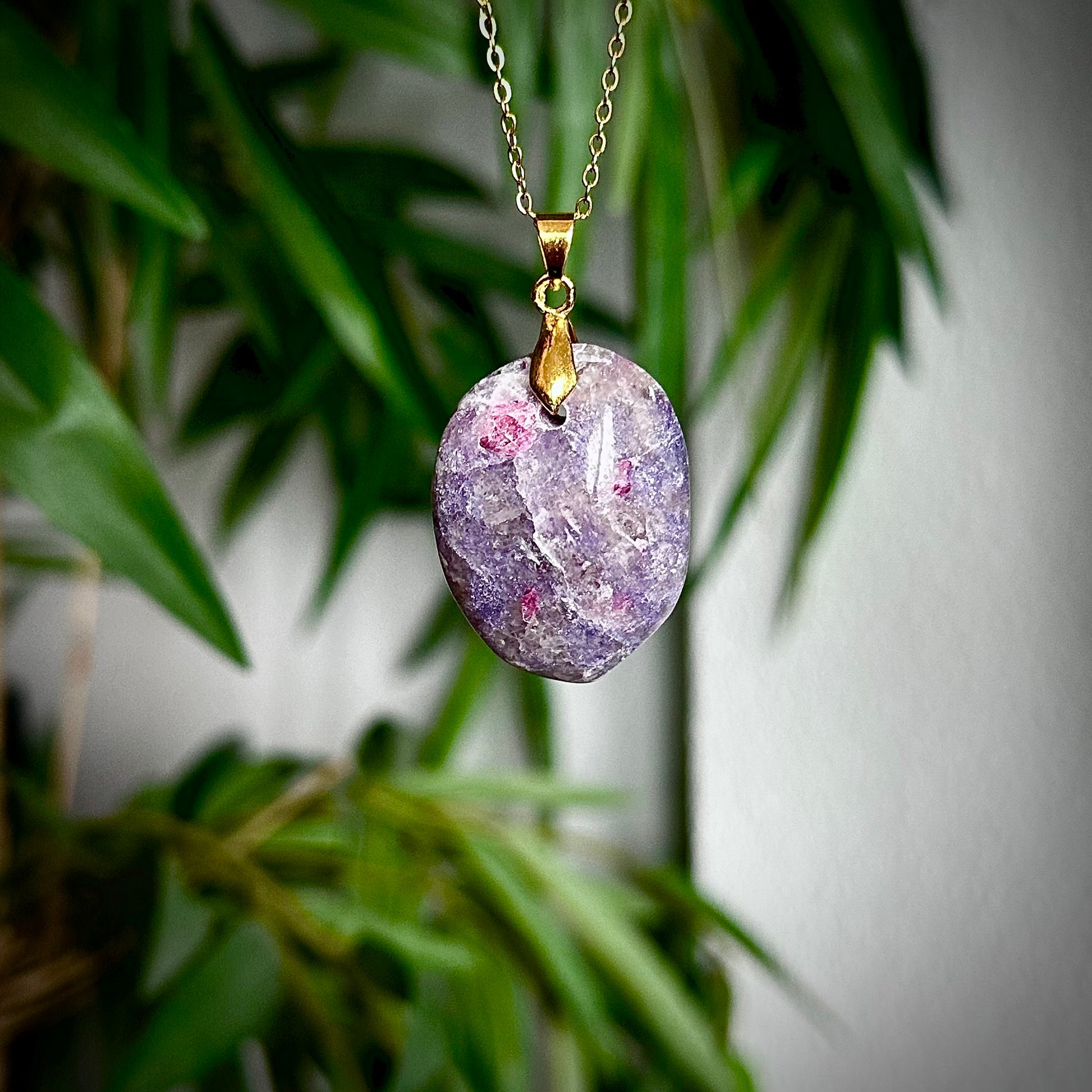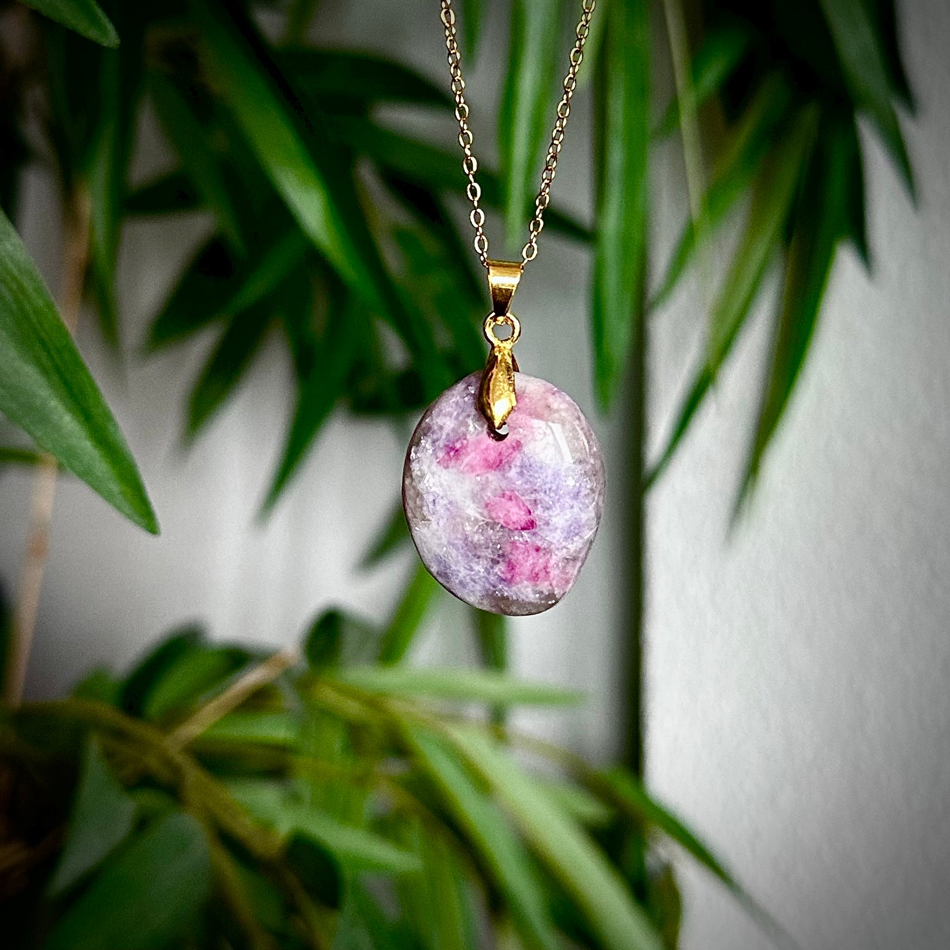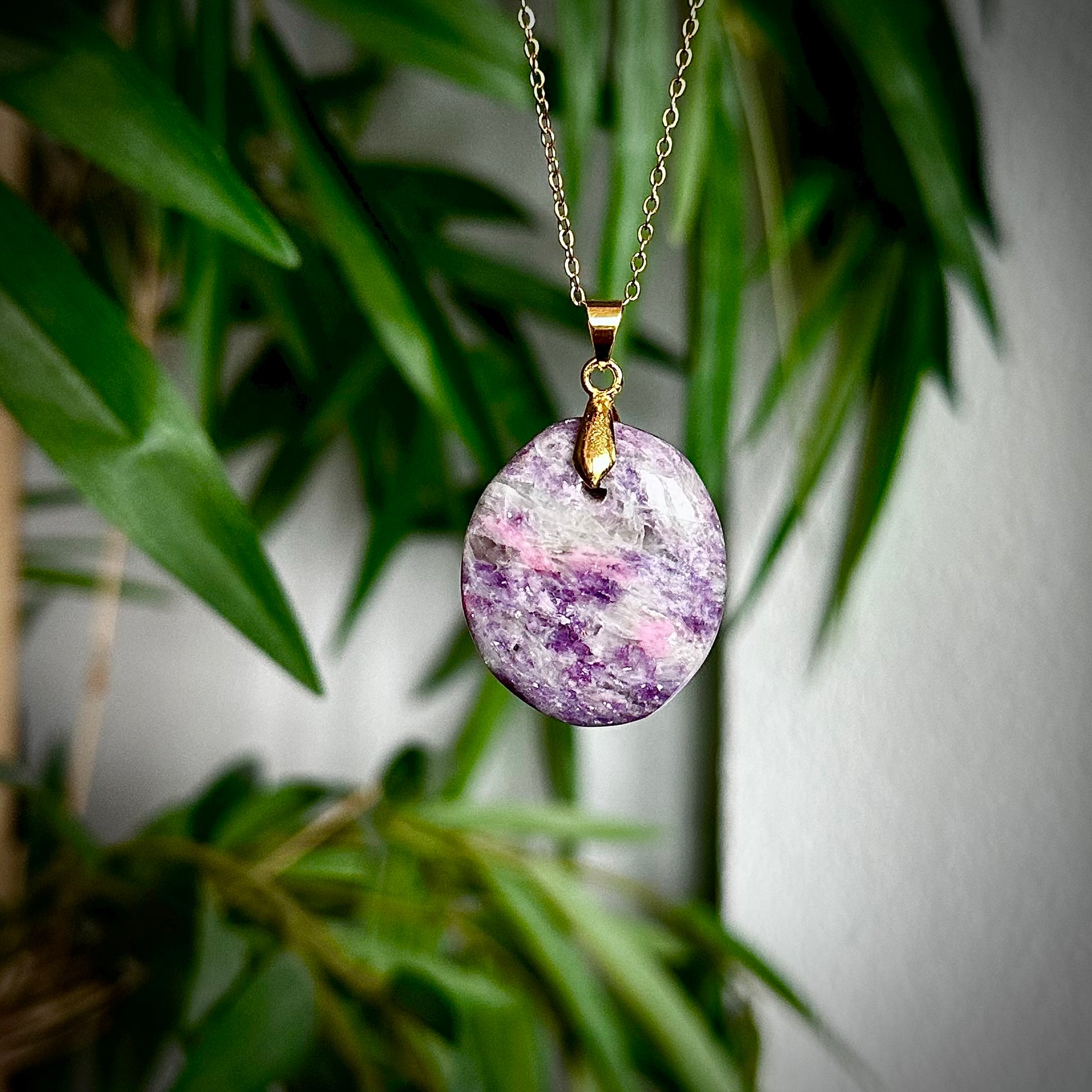 Lepidoliet kettinghangers met een goudkleurig hangertje.