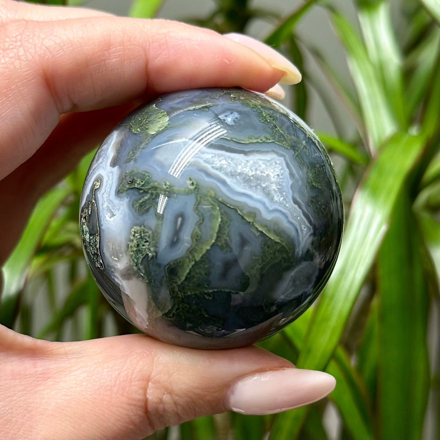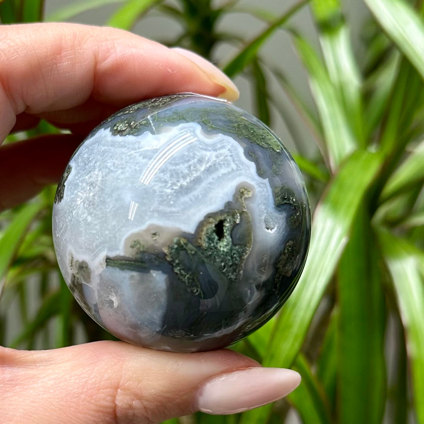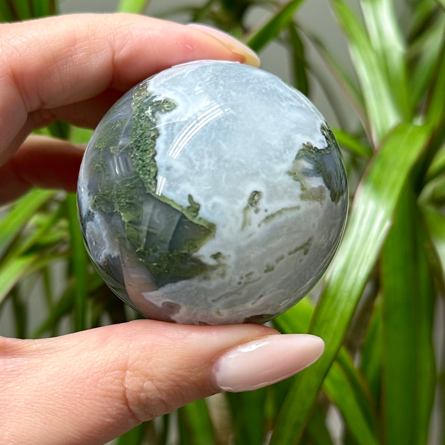 Bij deze bol wisselen de groene tinten en de kwarts elkaar mooi af.
