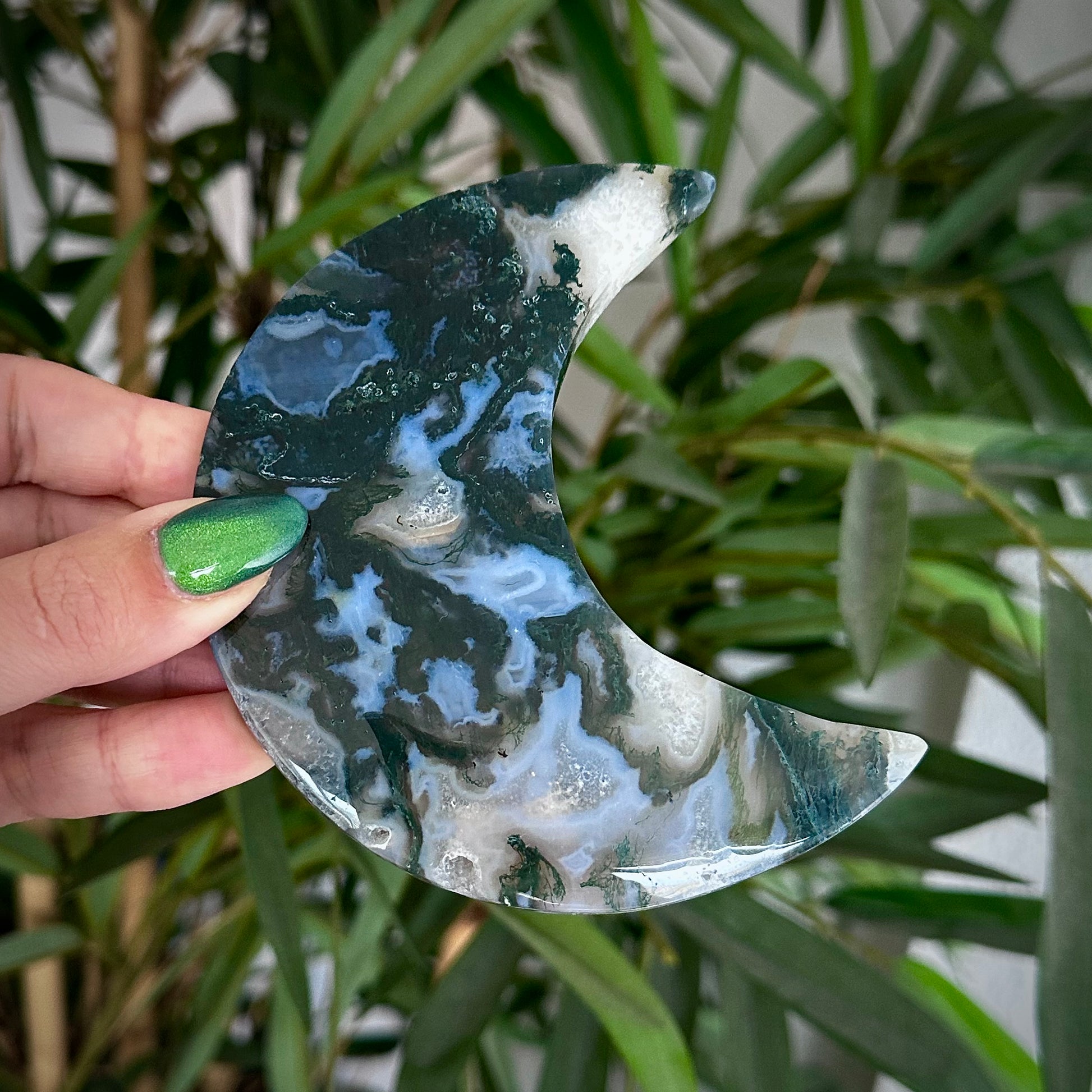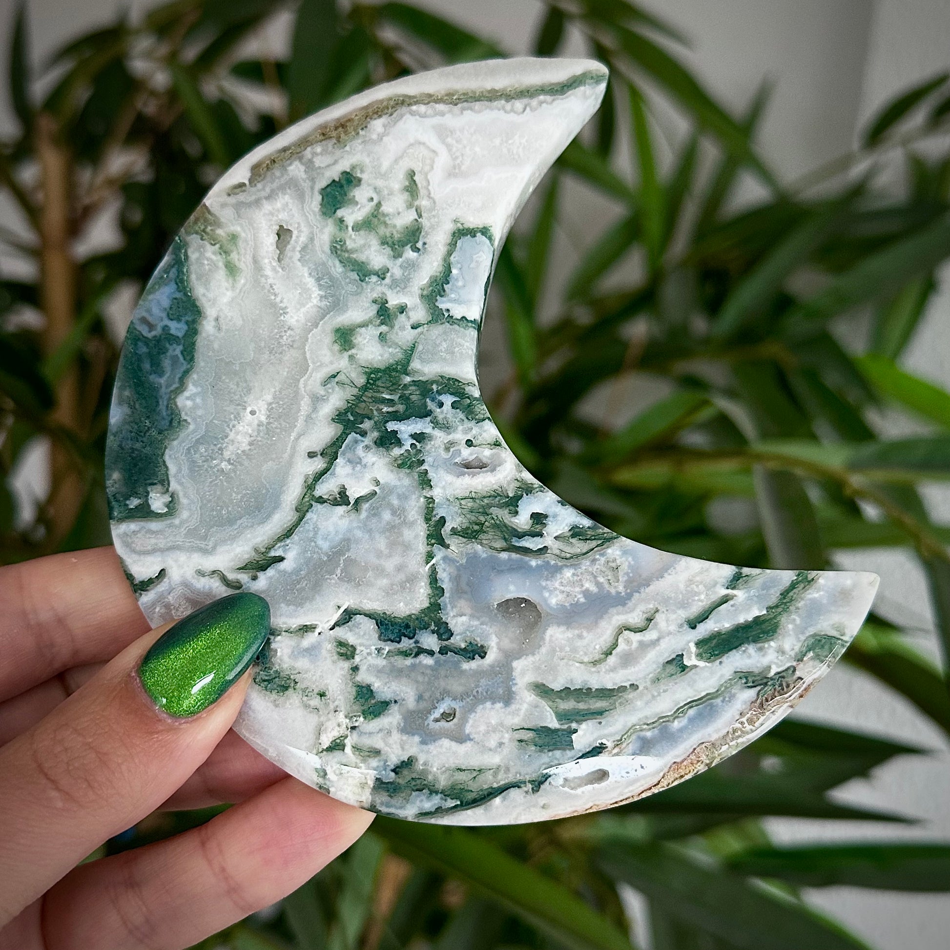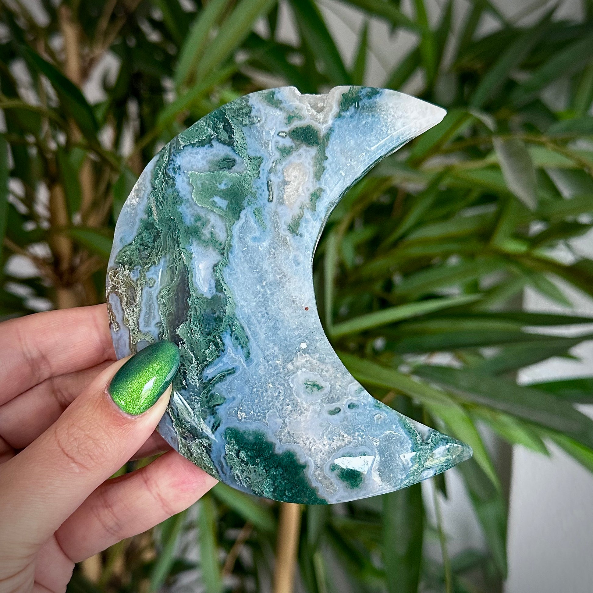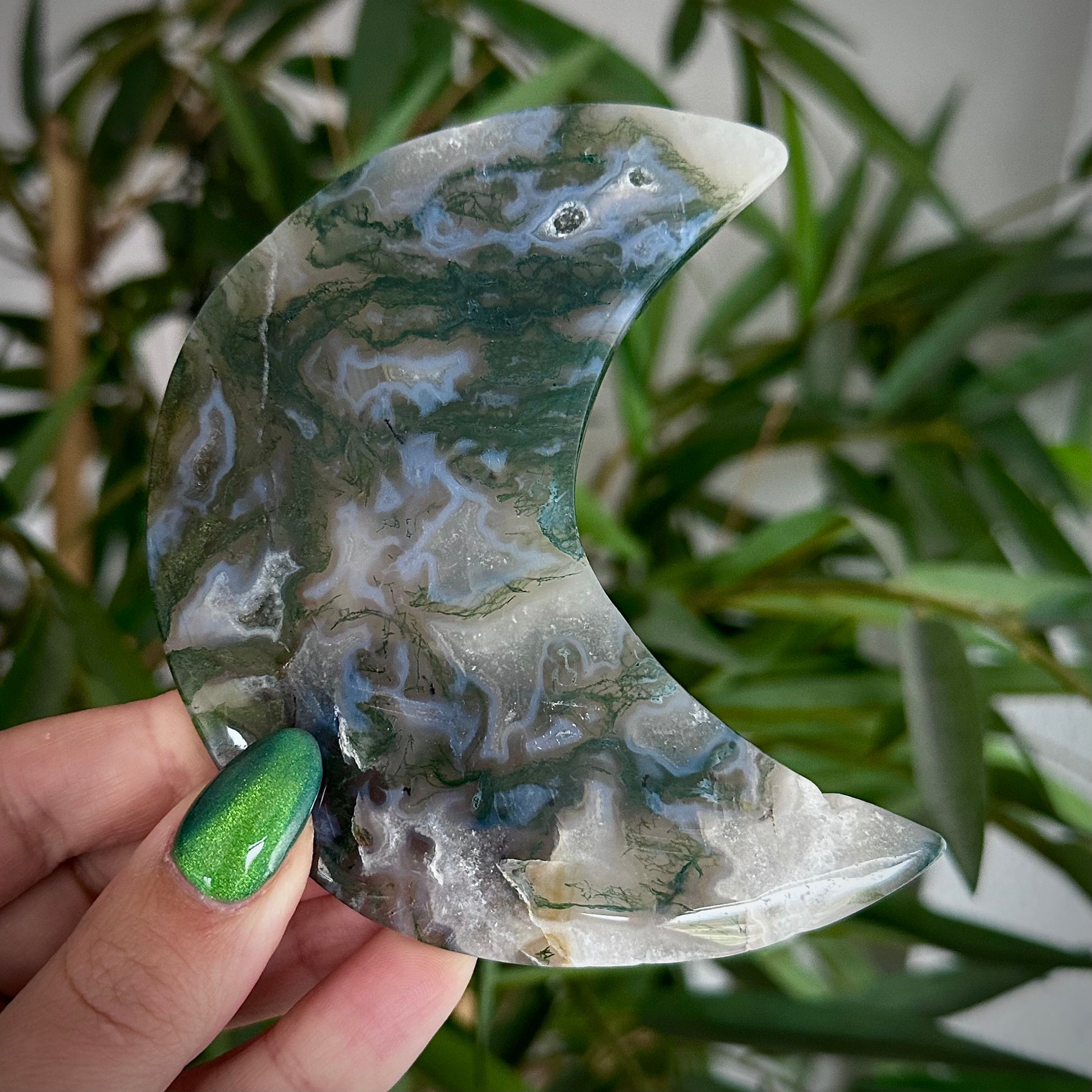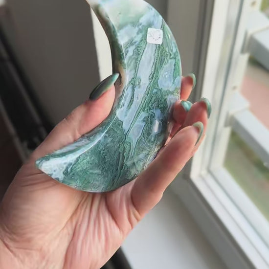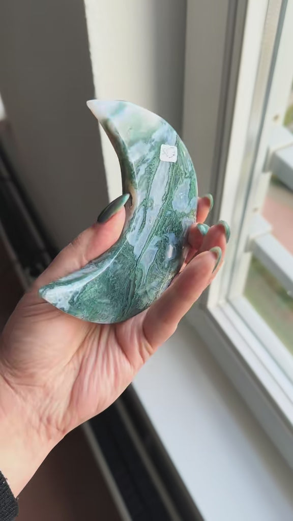 Op de foto zie je één zijde van de maan. Wil je beide zijdes zien? Kijk dan het filmpje! Hierbij laat ik de manen ook tegen het licht in zien, sommigen schijnen namelijk heel mooi door! Laat ik het niet zien? Dan laat de maan niet of nauwelijks licht door.