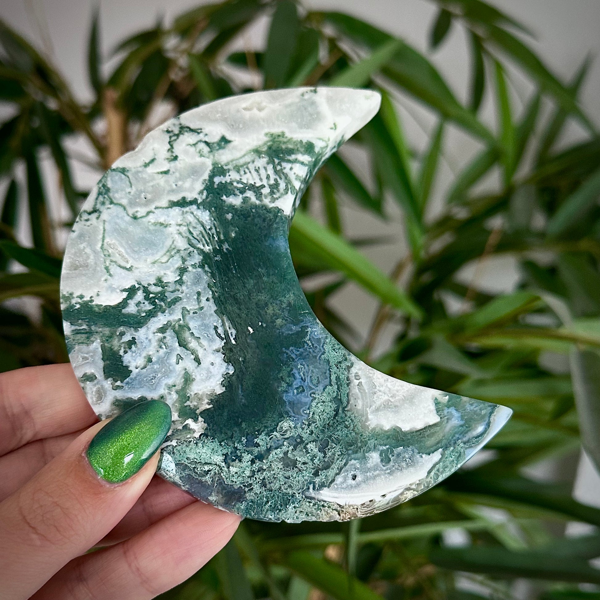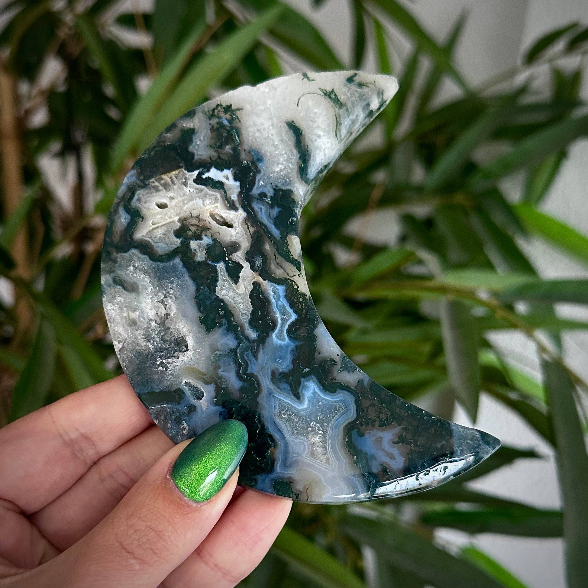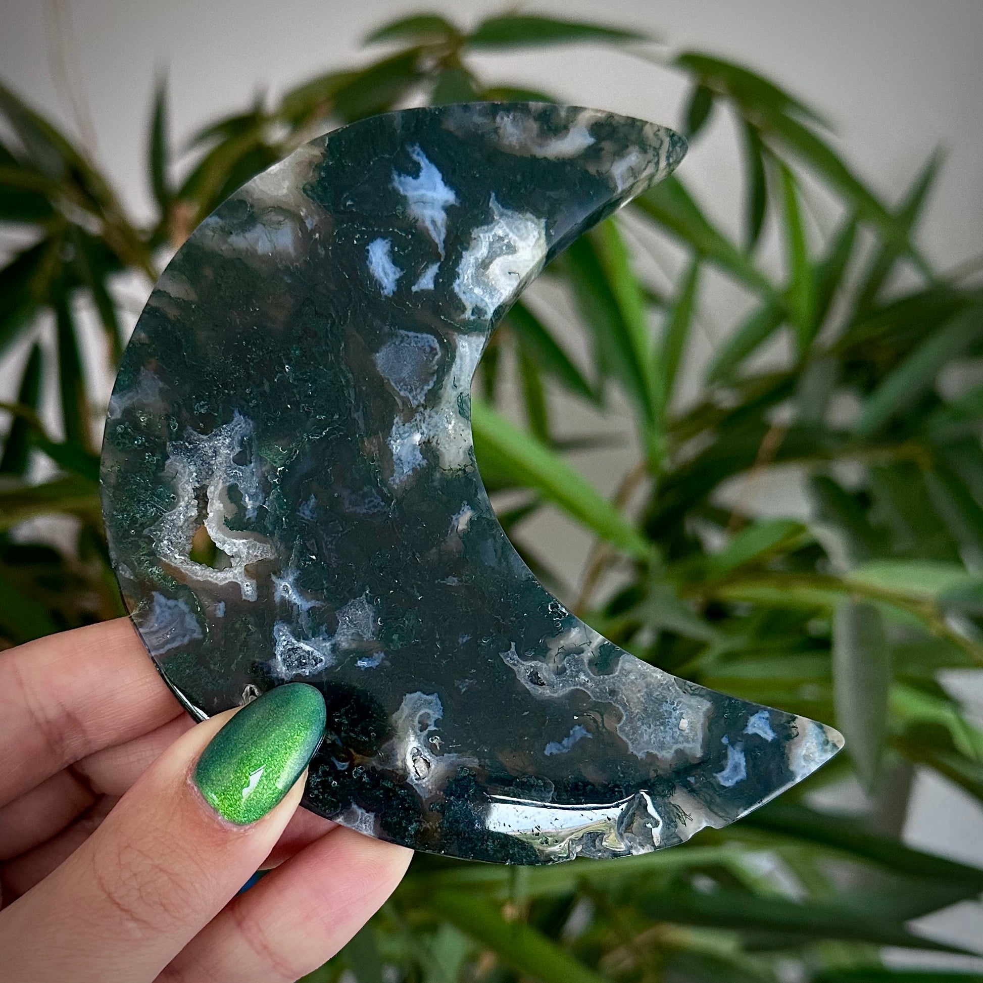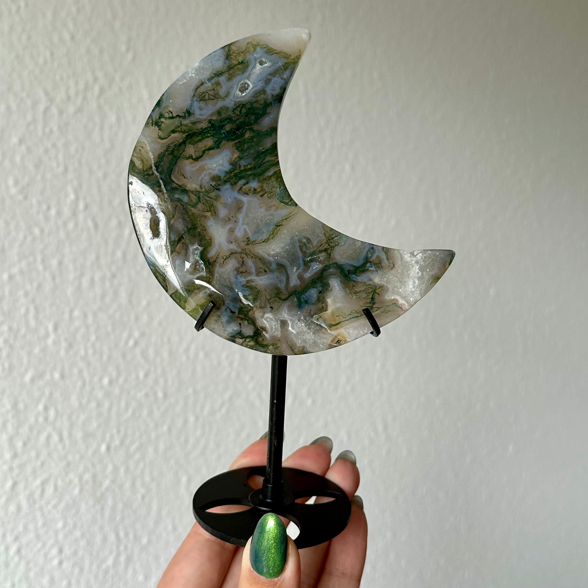 Op de foto zie je één zijde van de maan. Wil je beide zijdes zien? Kijk dan het filmpje! Hierbij laat ik de manen ook tegen het licht in zien, sommigen schijnen namelijk heel mooi door! Laat ik het niet zien? Dan laat de maan niet of nauwelijks licht door.
