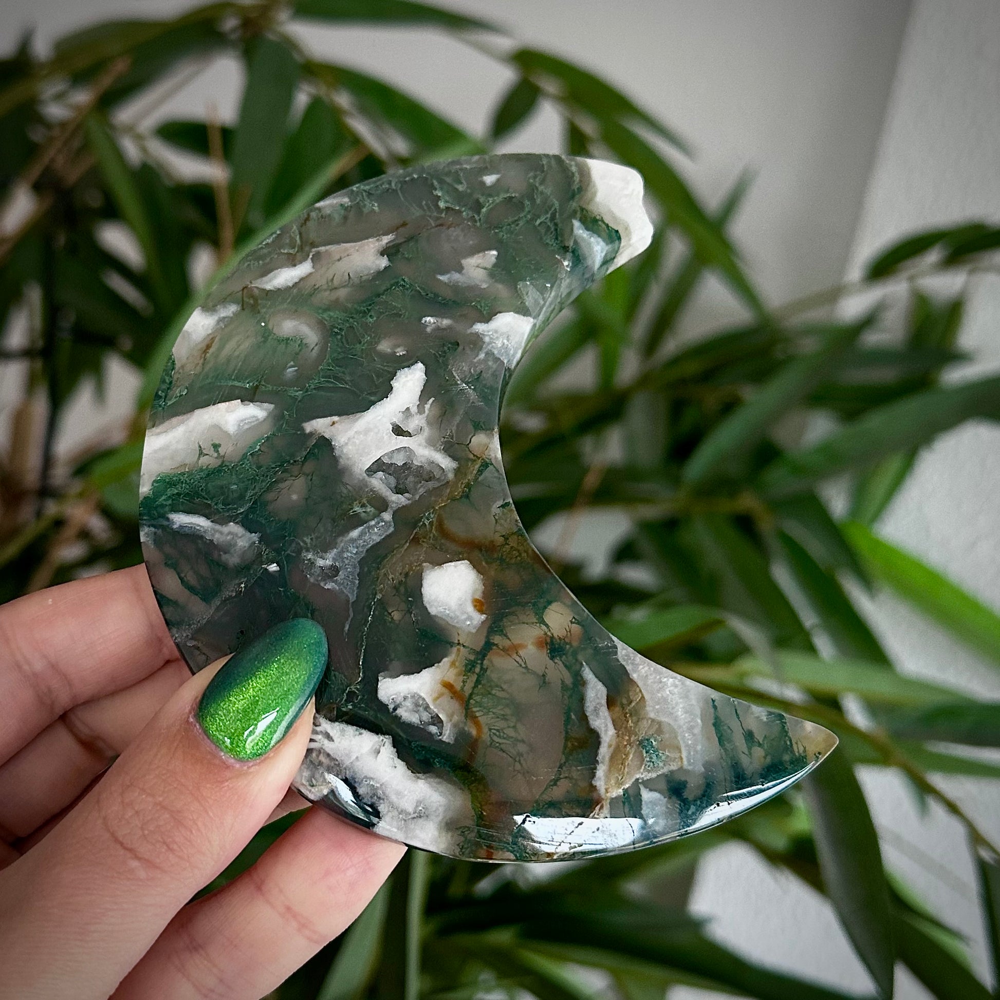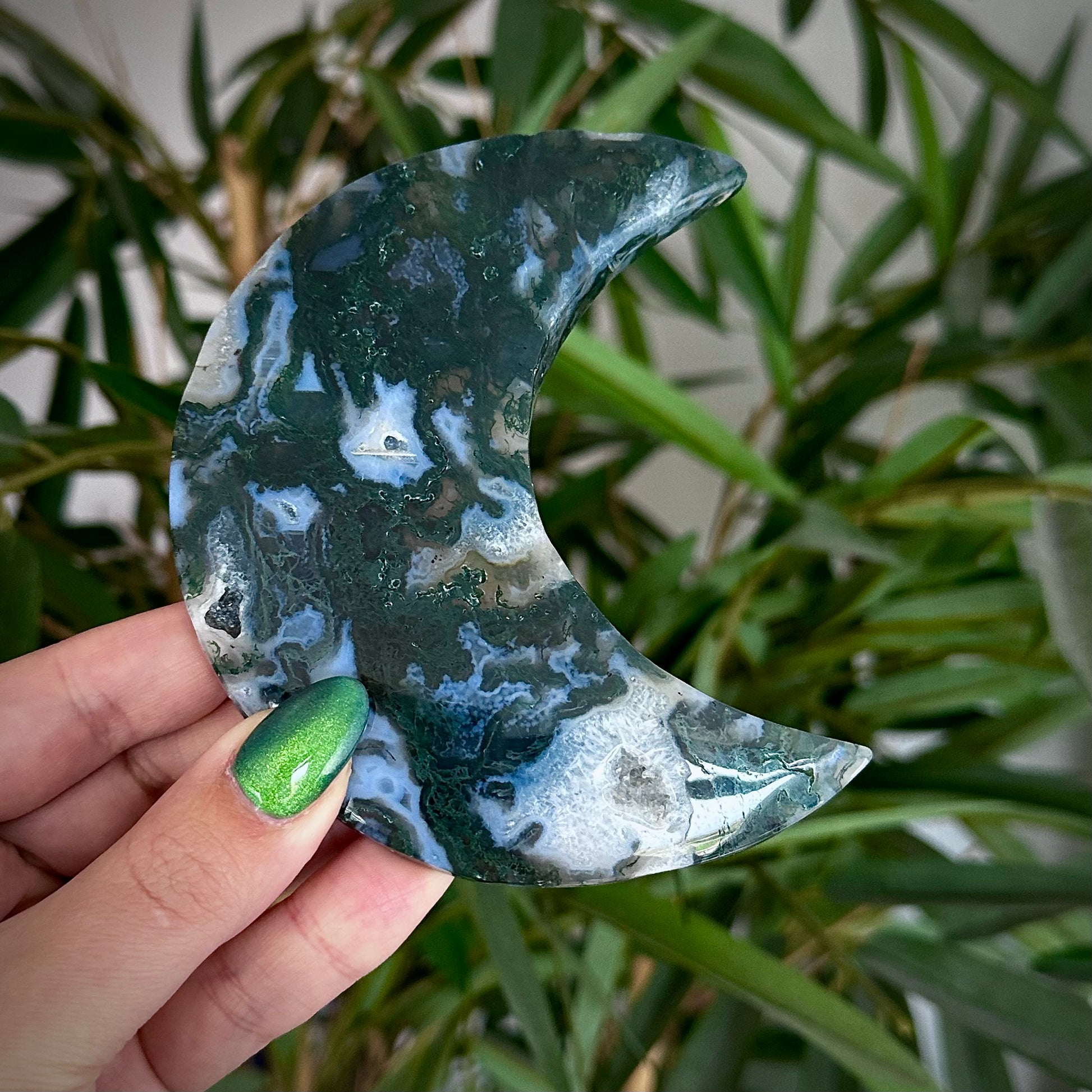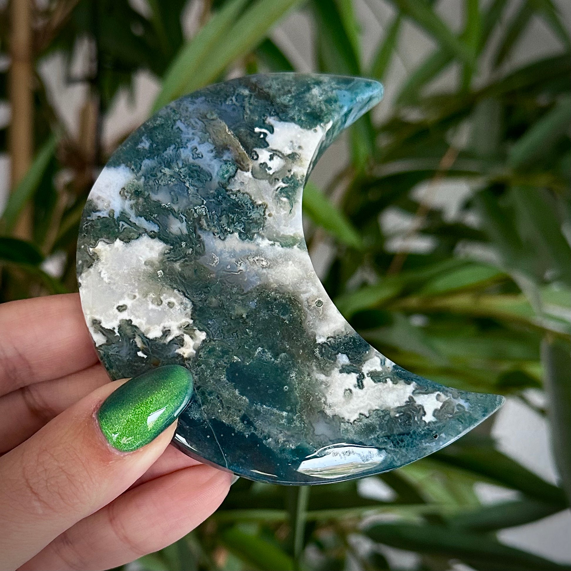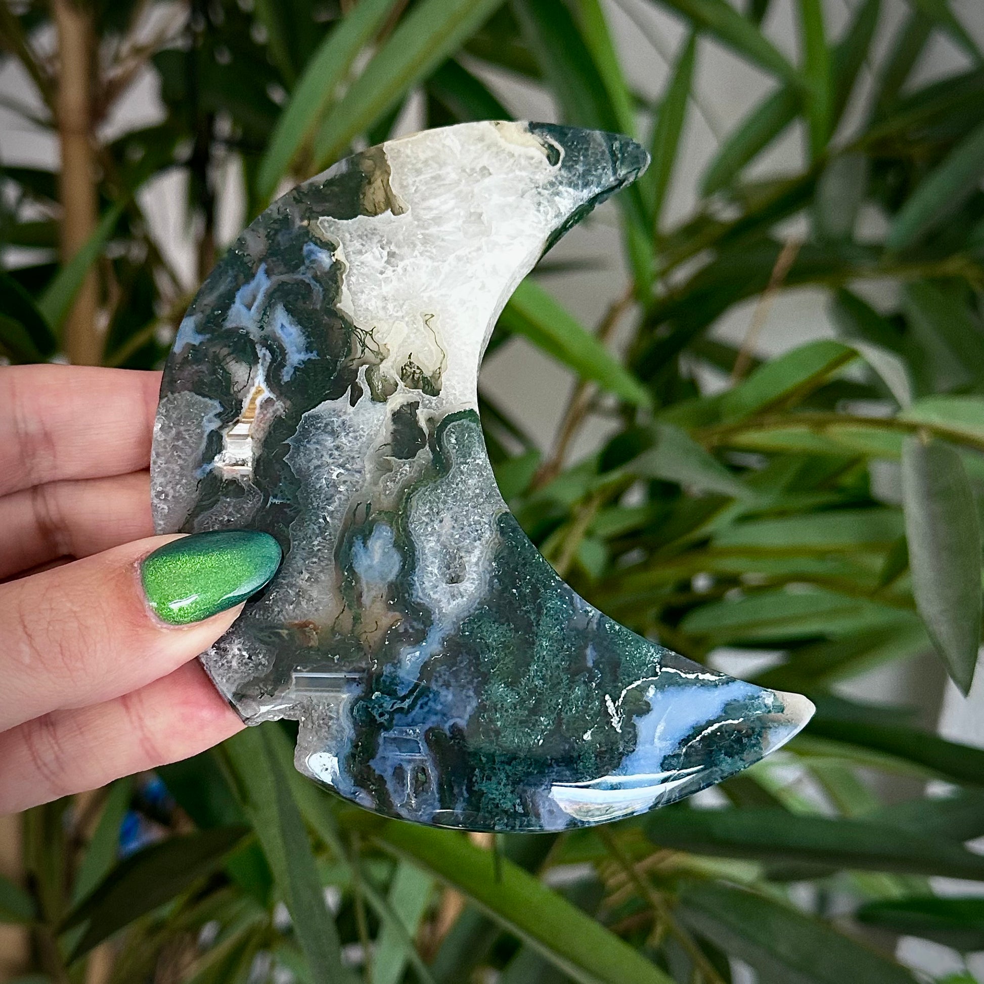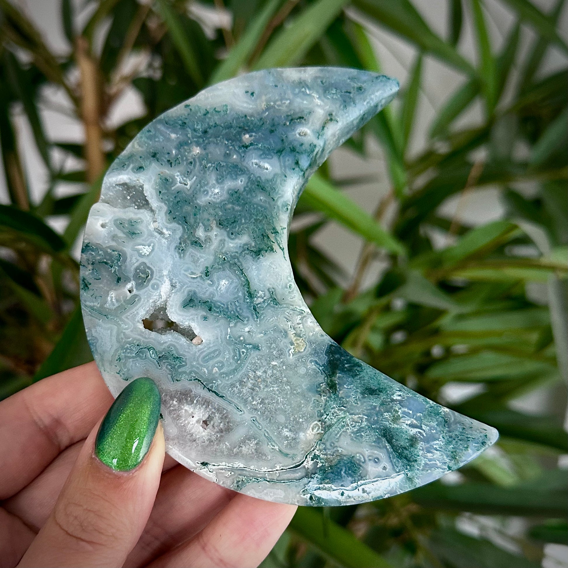 Op de foto zie je één zijde van de maan. Wil je beide zijdes zien? Kijk dan het filmpje! Hierbij laat ik de manen ook tegen het licht in zien, sommigen schijnen namelijk heel mooi door! Laat ik het niet zien? Dan laat de maan niet of nauwelijks licht door.