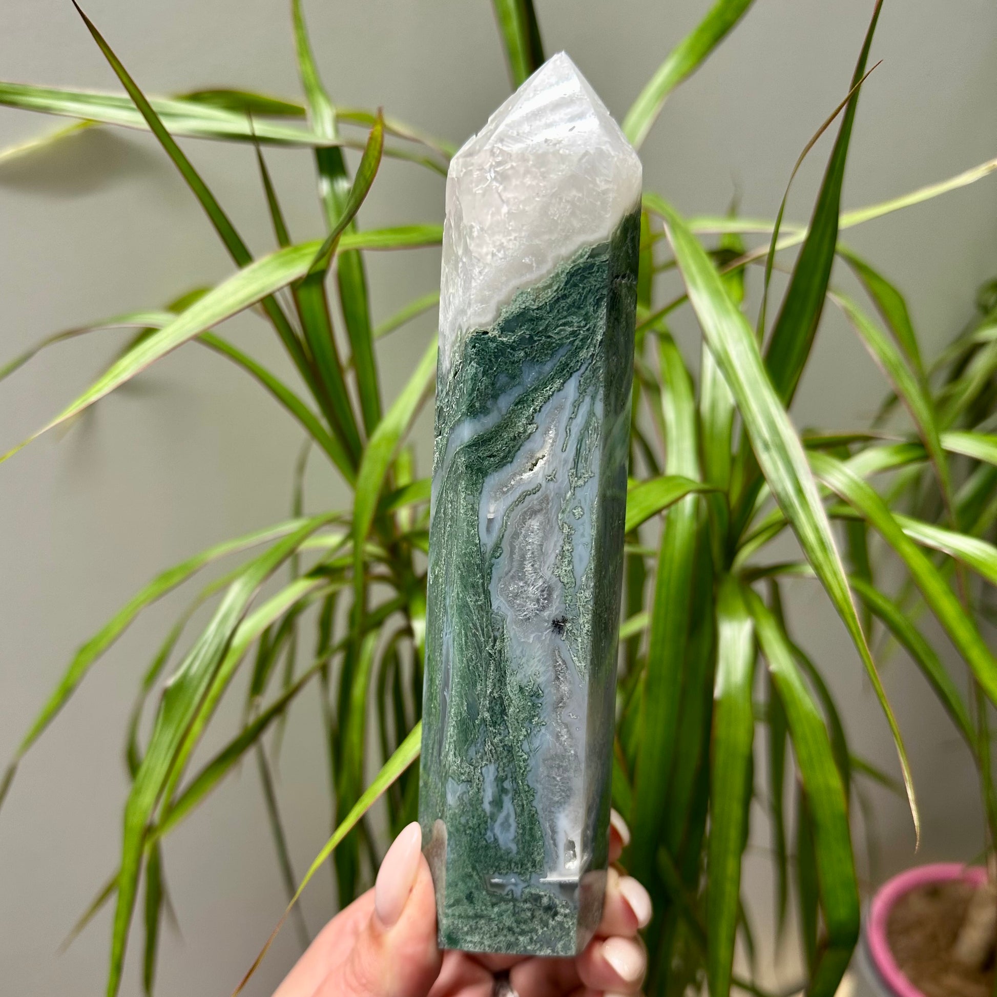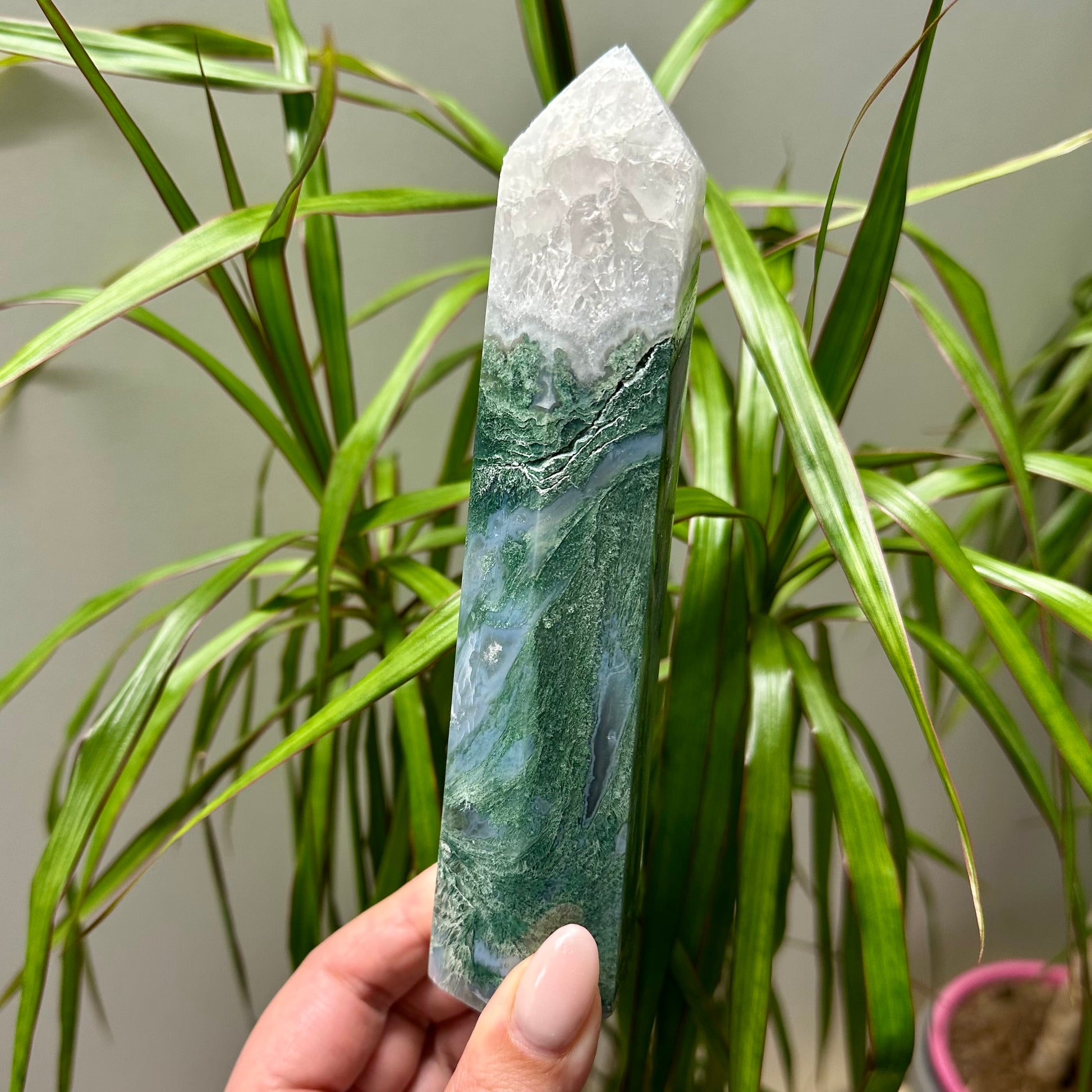 De punt bestaat volledig uit kwarts, deze is daardoor ook niet helemaal perfect. Dit is geen beschadiging, dit komt doordat de kwarts uit verschillende formaties bestaat.