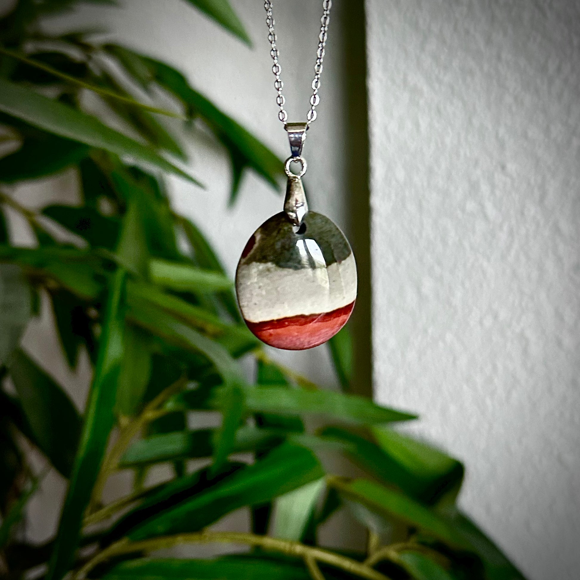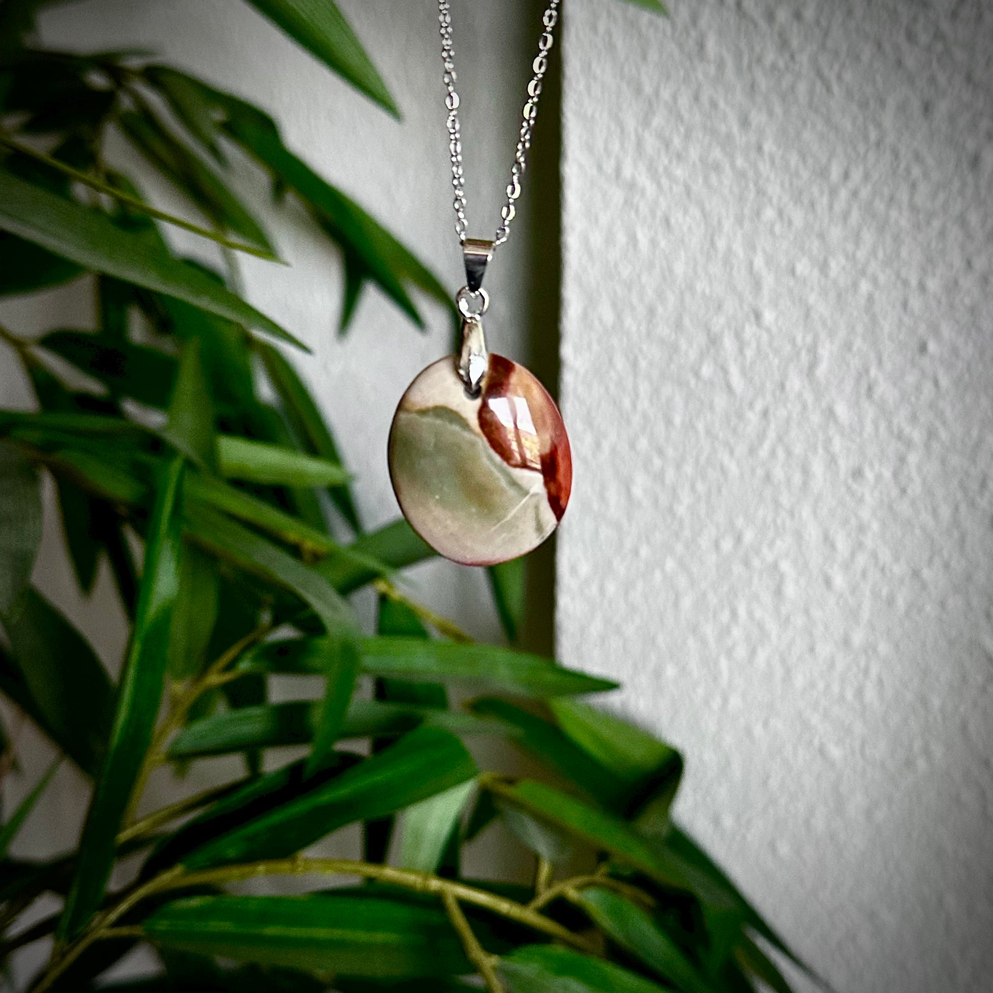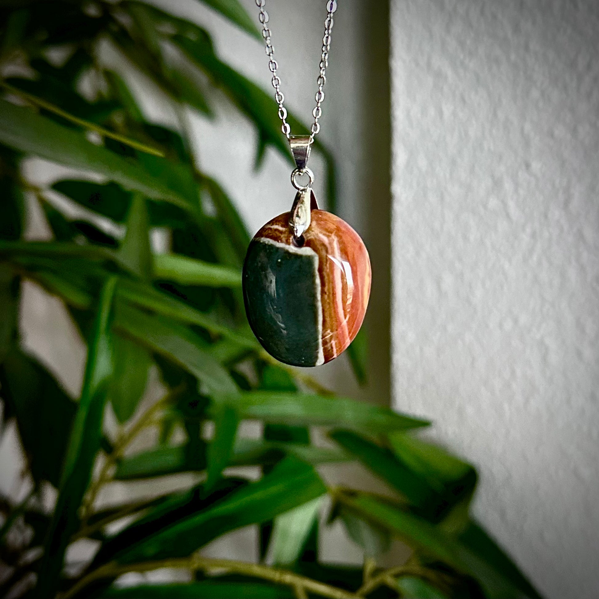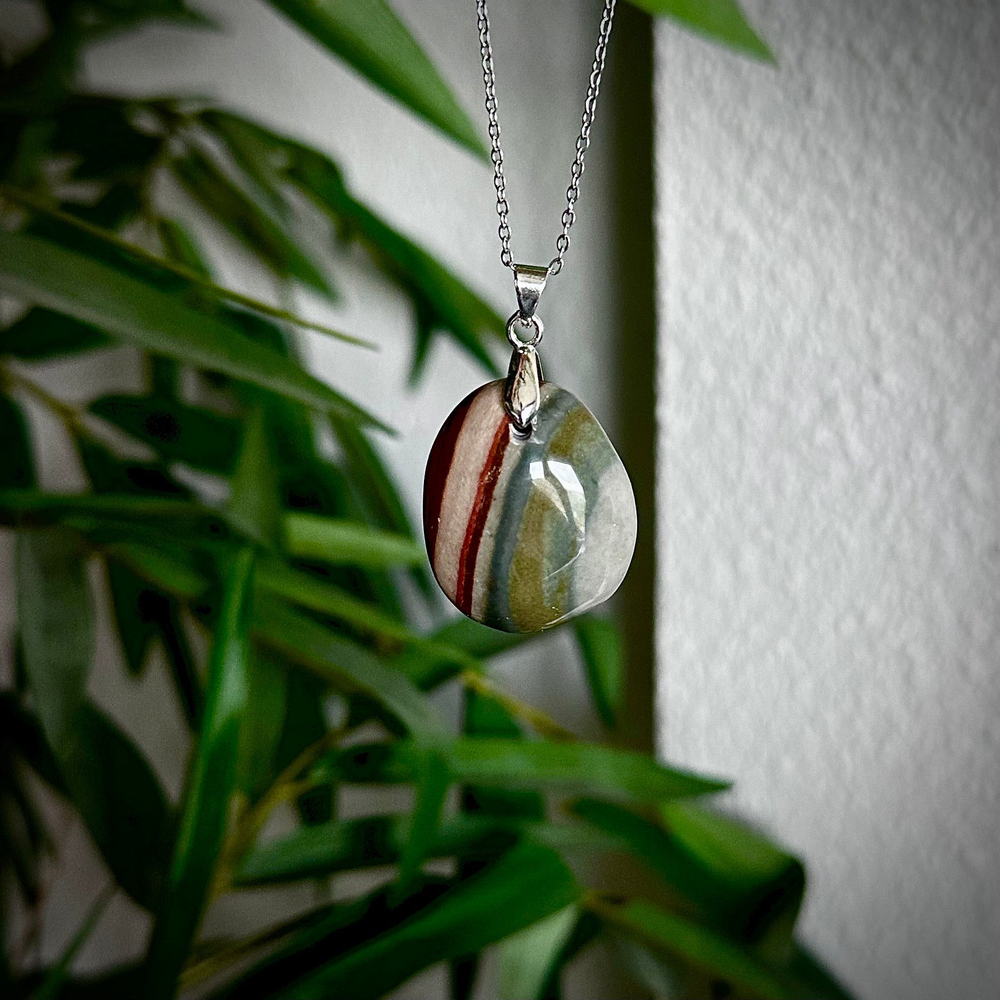 Polychroom jaspis kettinghangers met een zilverkleurig hangertje.