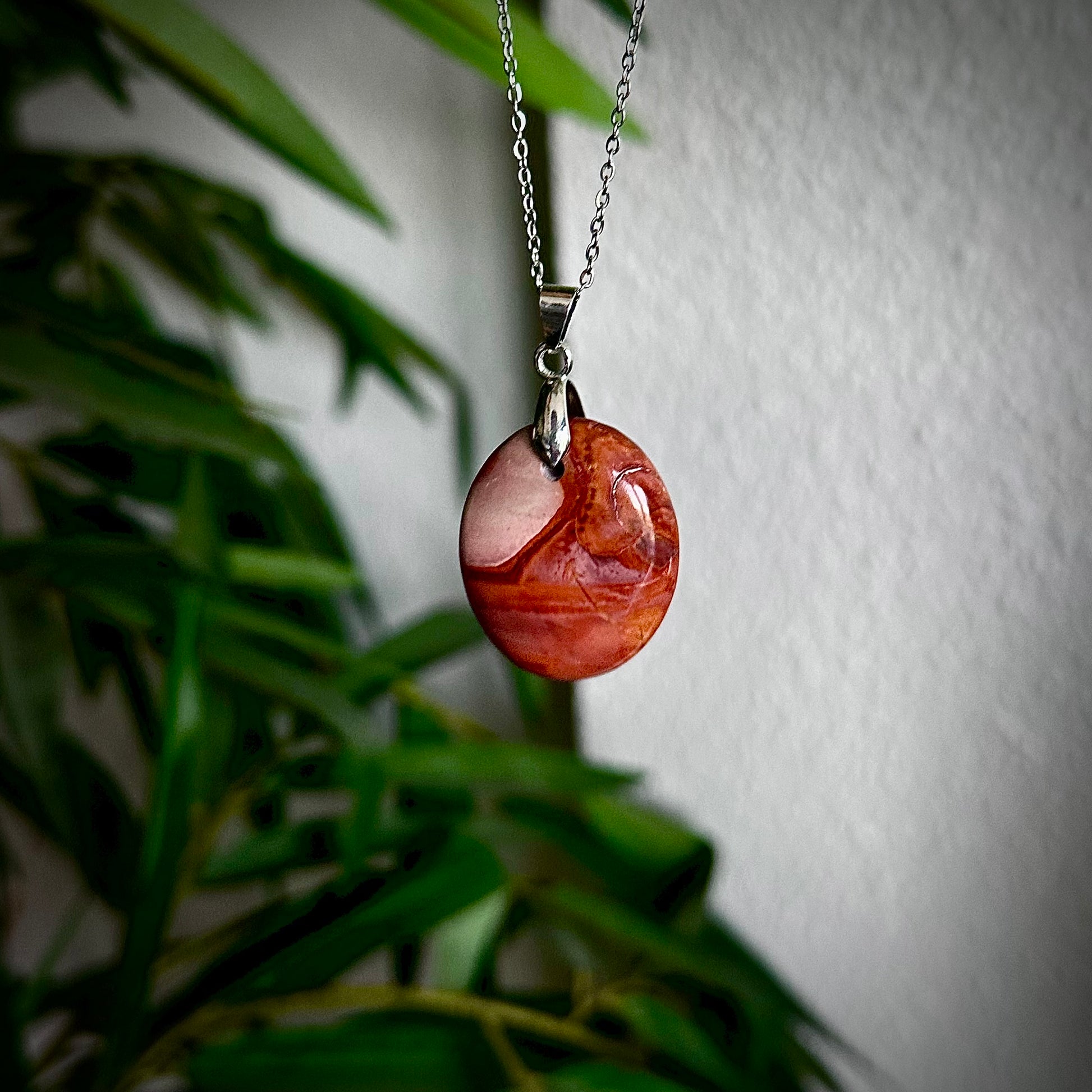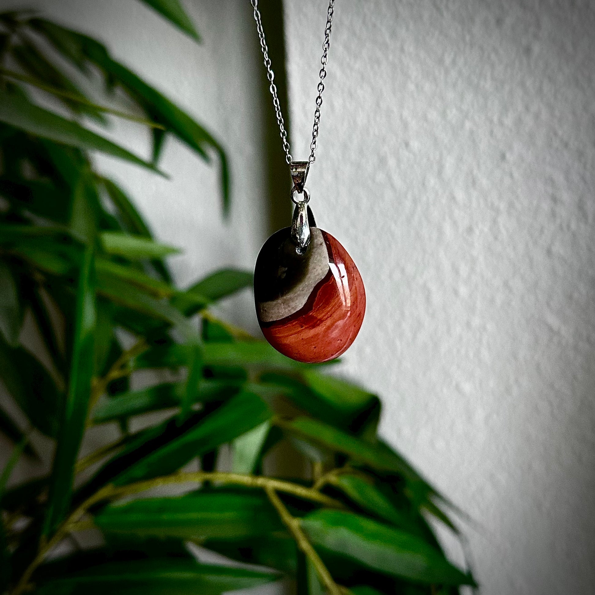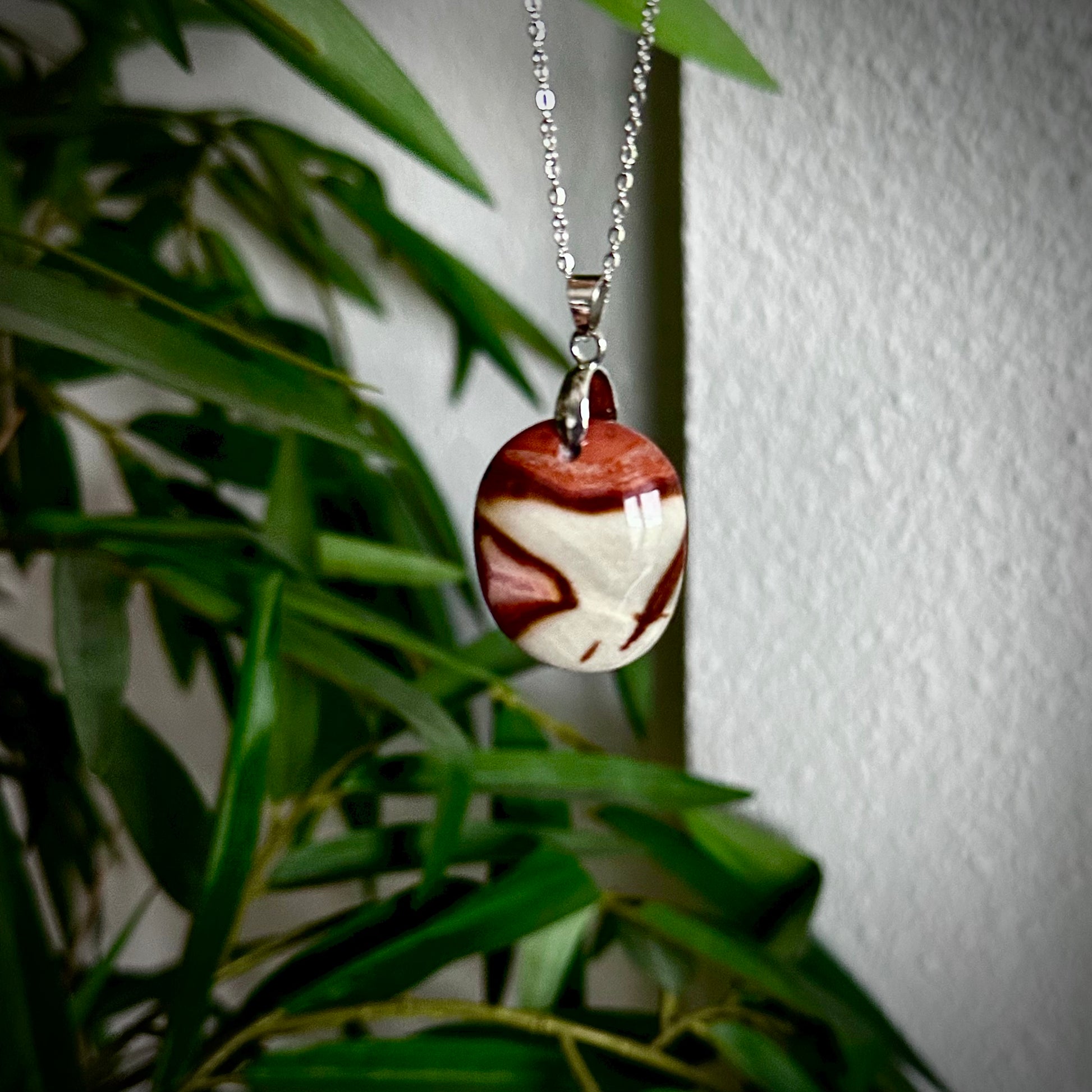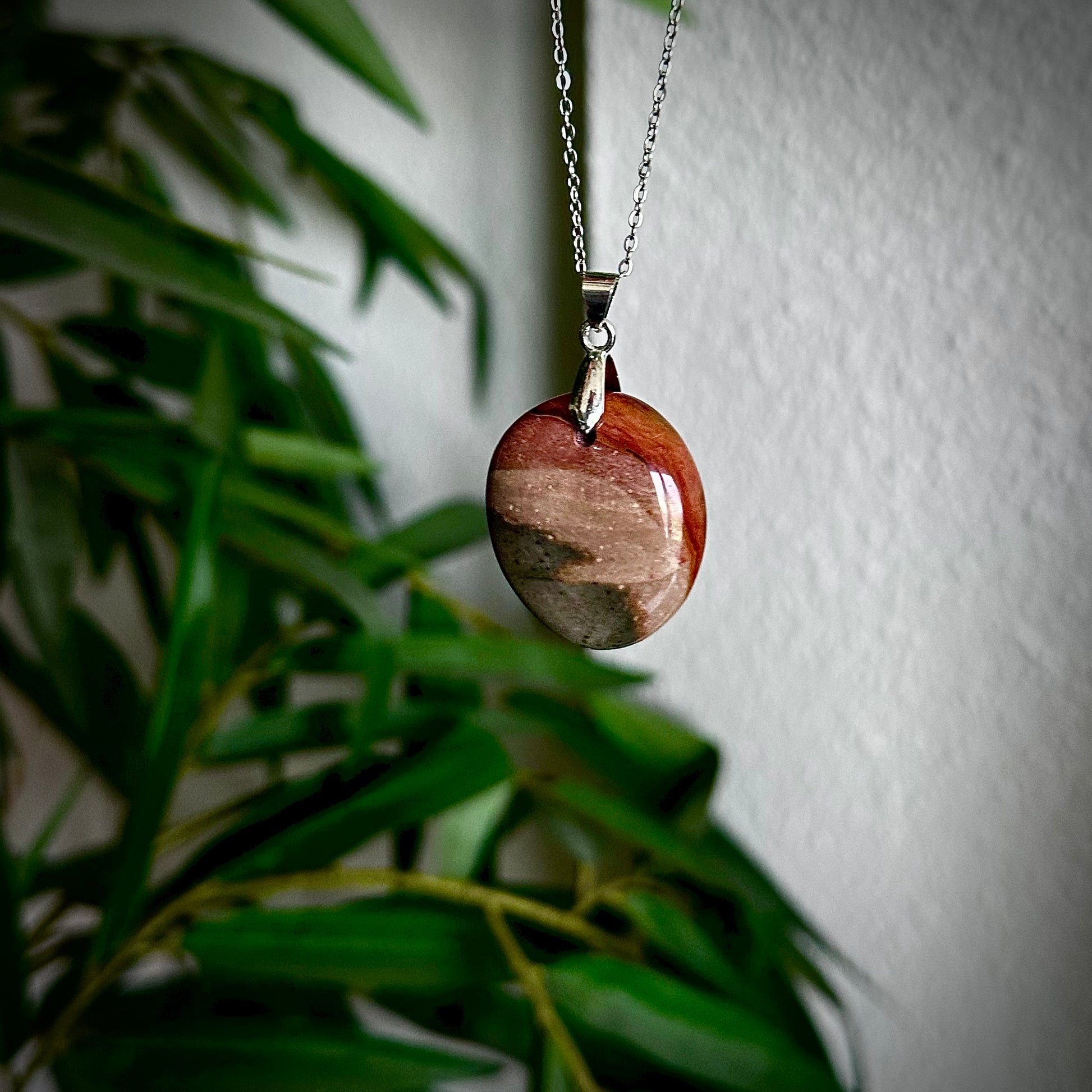 Polychroom jaspis kettinghangers met een zilverkleurig hangertje.