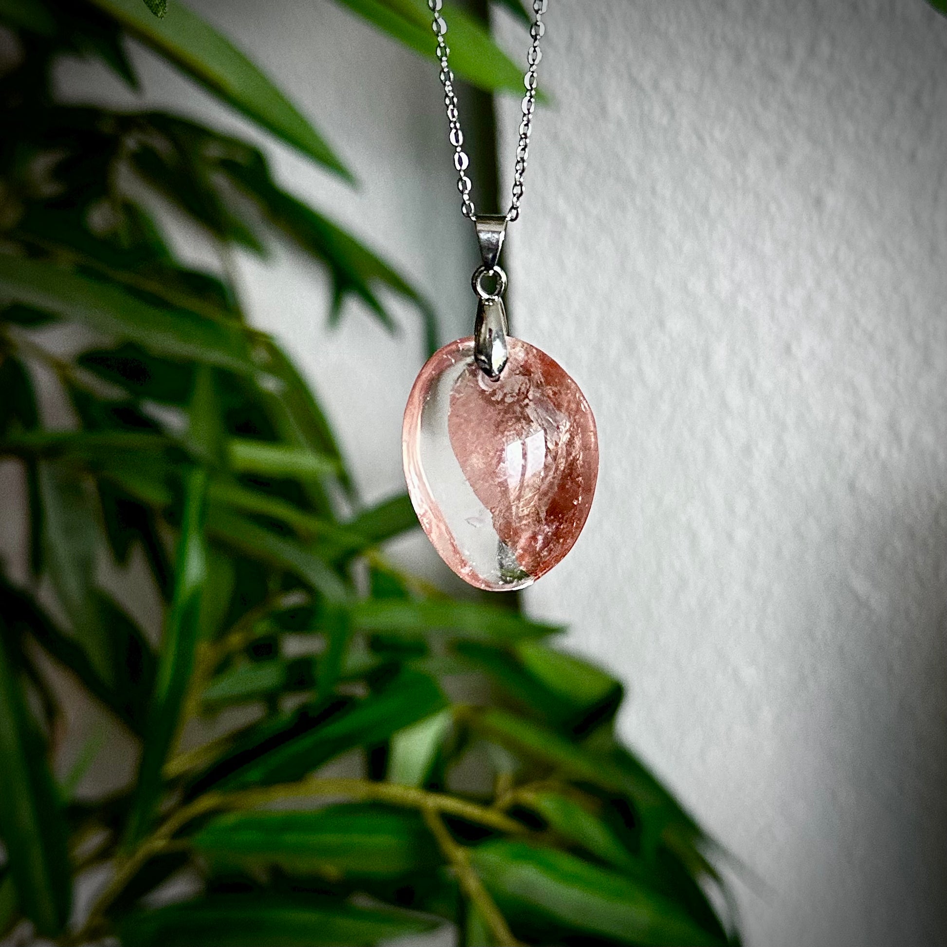 Red healer (hematiet kwarts) kettinghangers met een zilverkleurig hangertje.