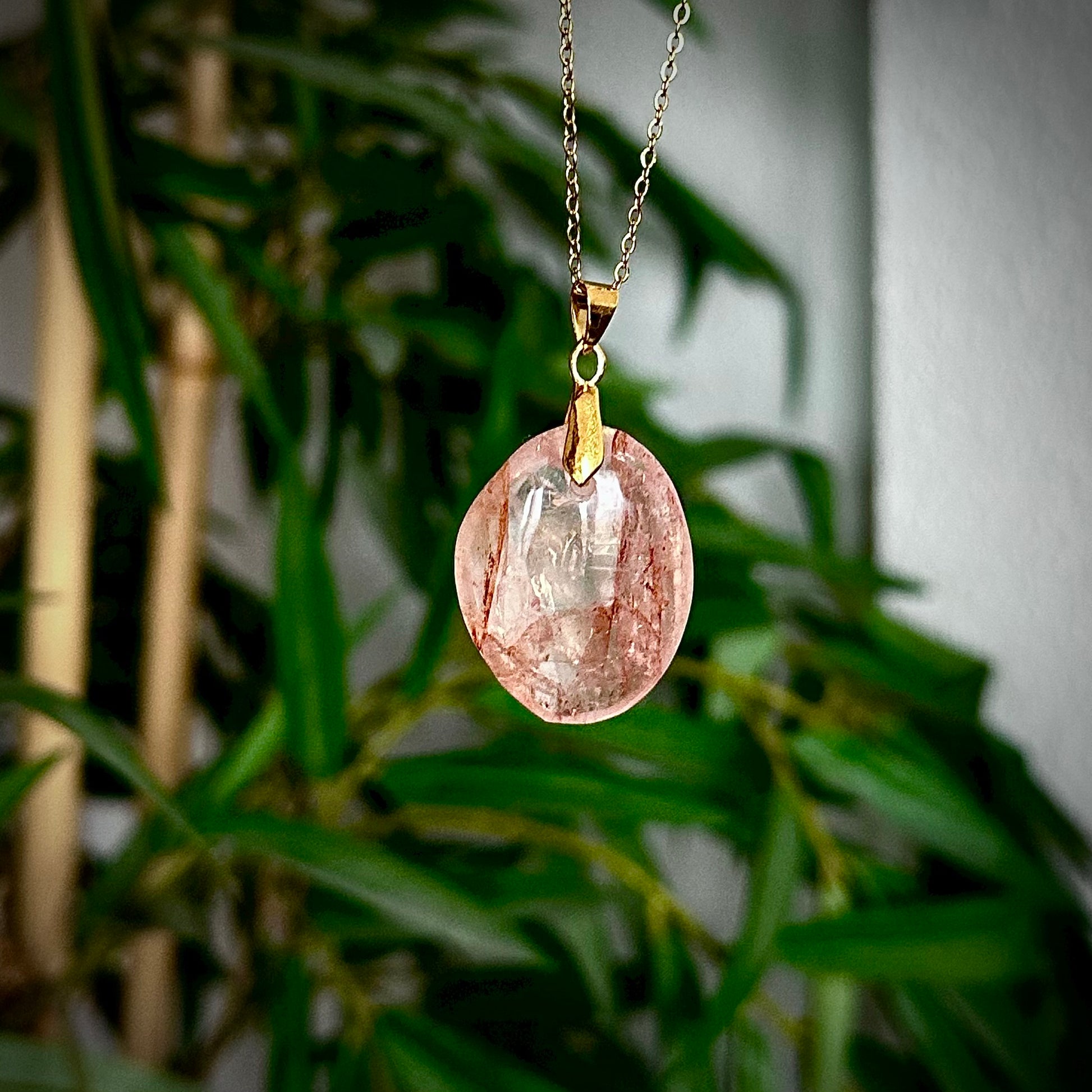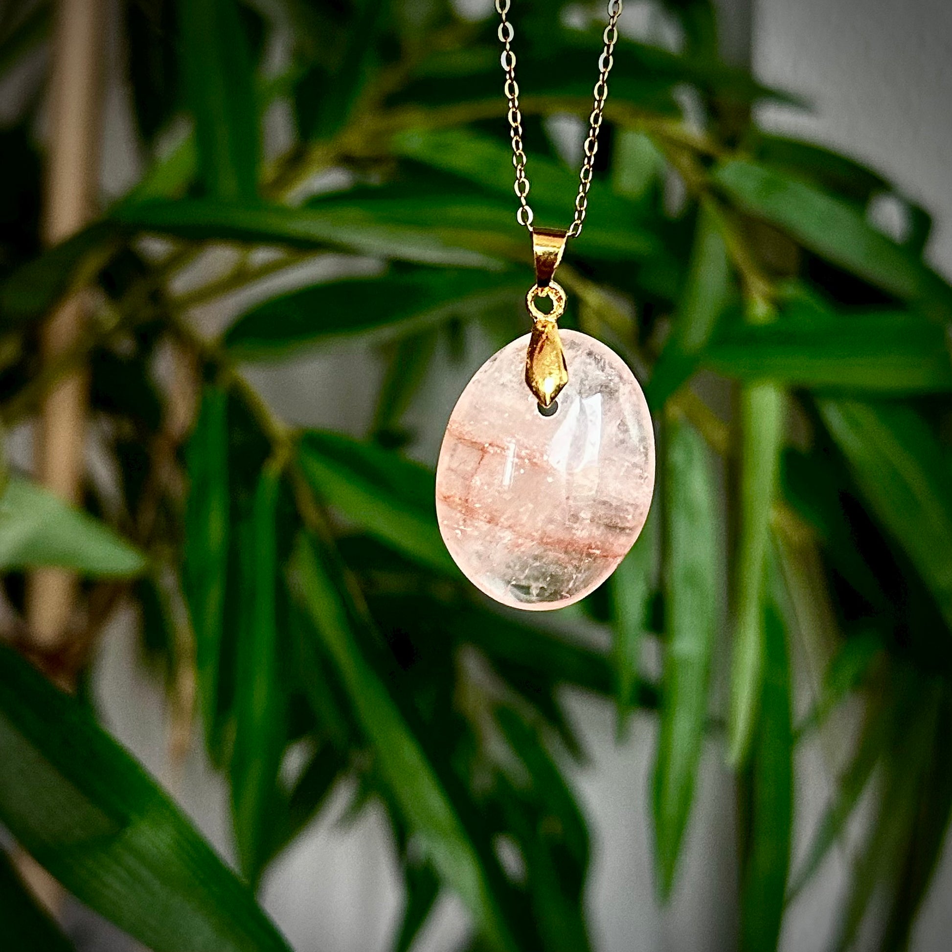 Red healer (hematiet kwarts) kettinghangers met een goudkleurig hangertje.
