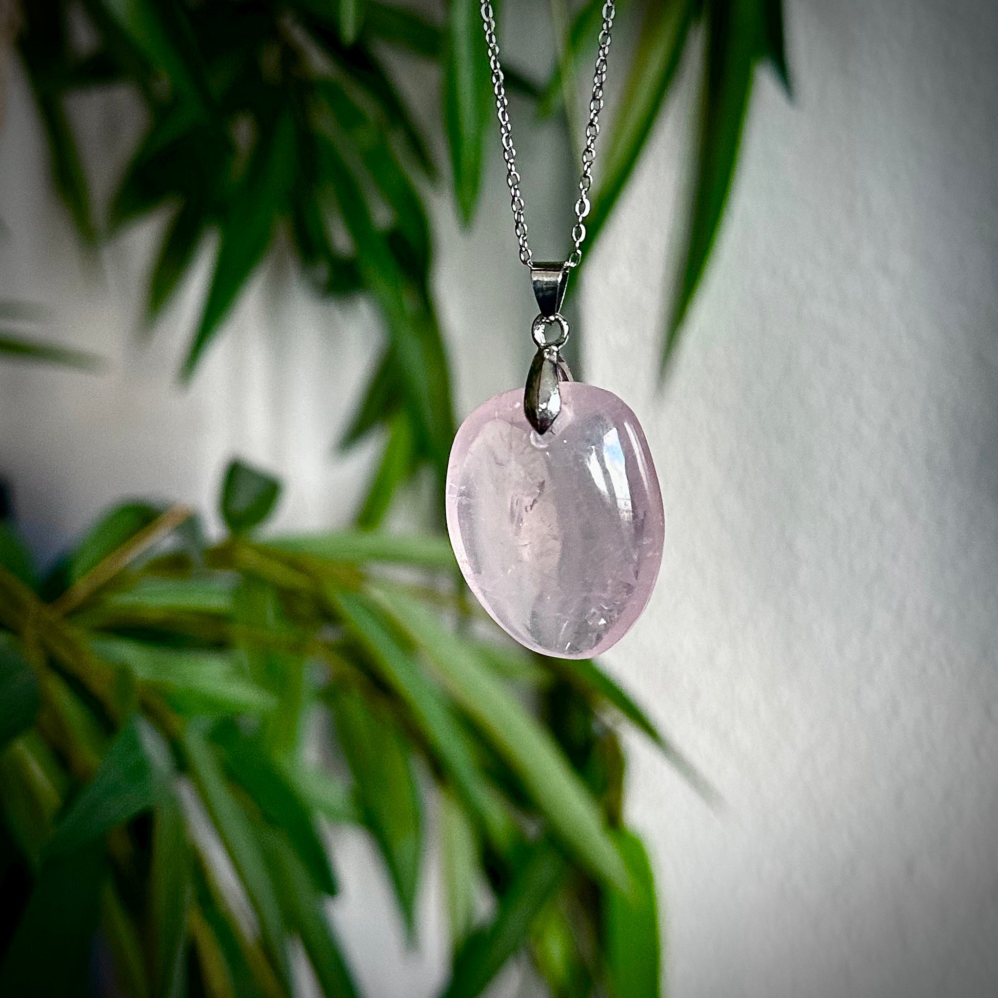 Rozenkwarts kettinghangers met een zilverkleurig hangertje.