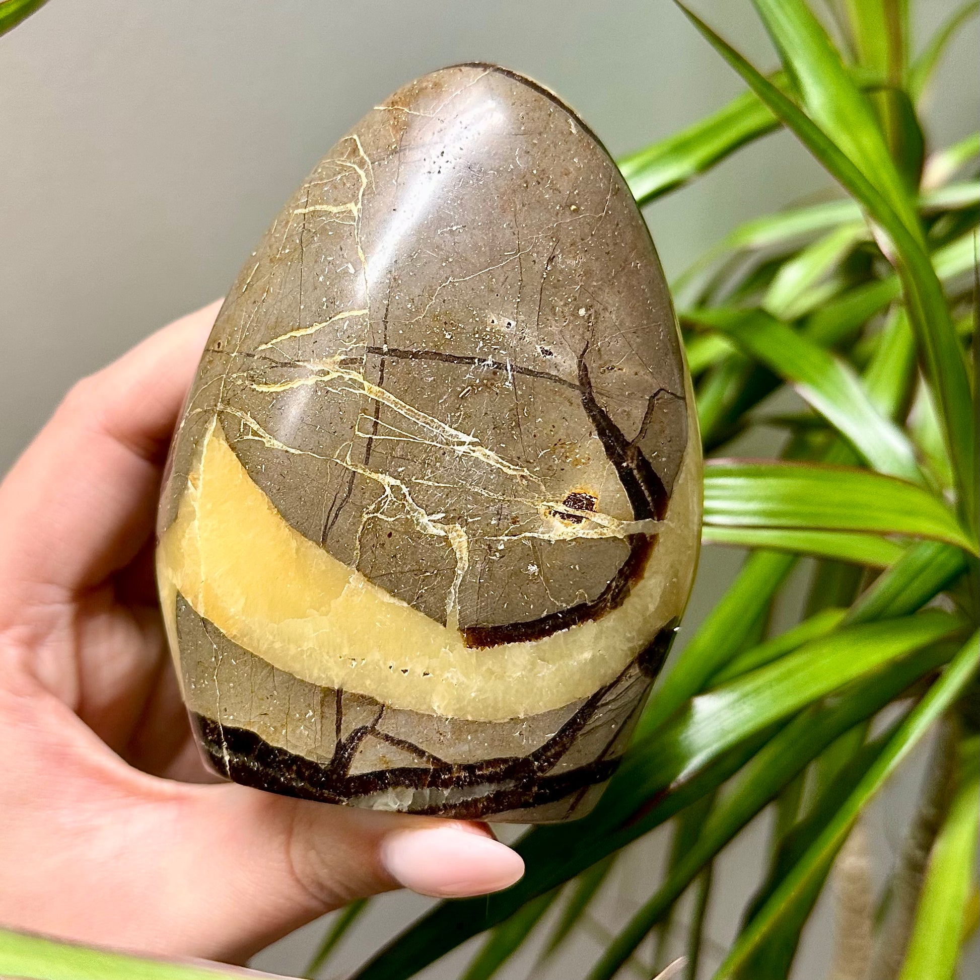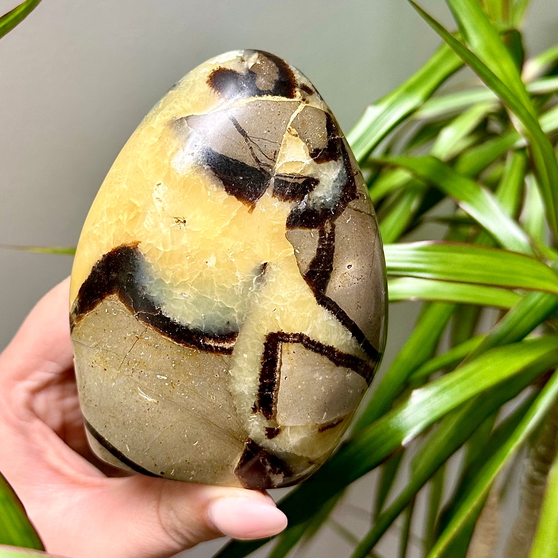 Septarie bestaat uit klei en kalk met holtes die gevuld zijn met calciet of gips. Septarie licht op onder UV licht.