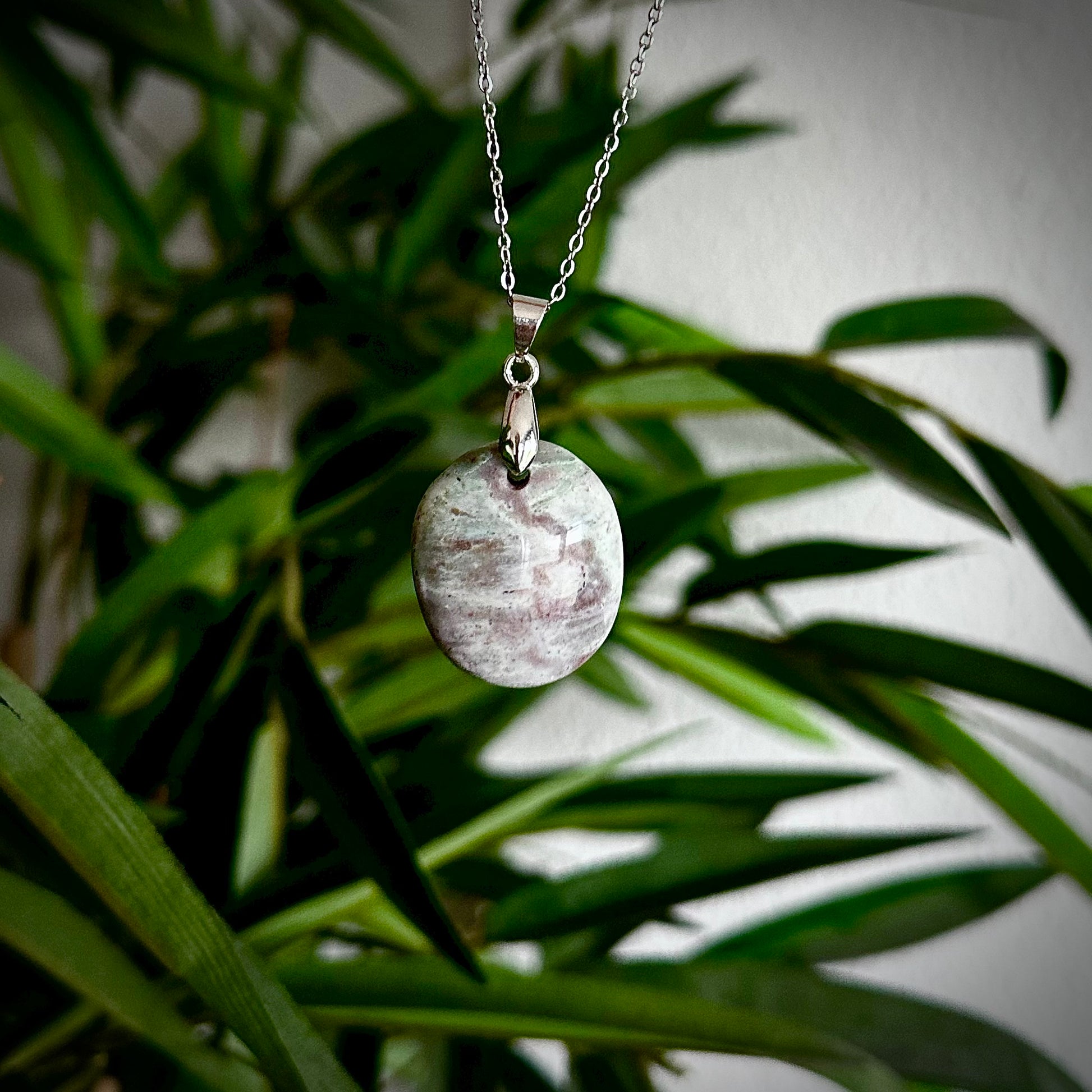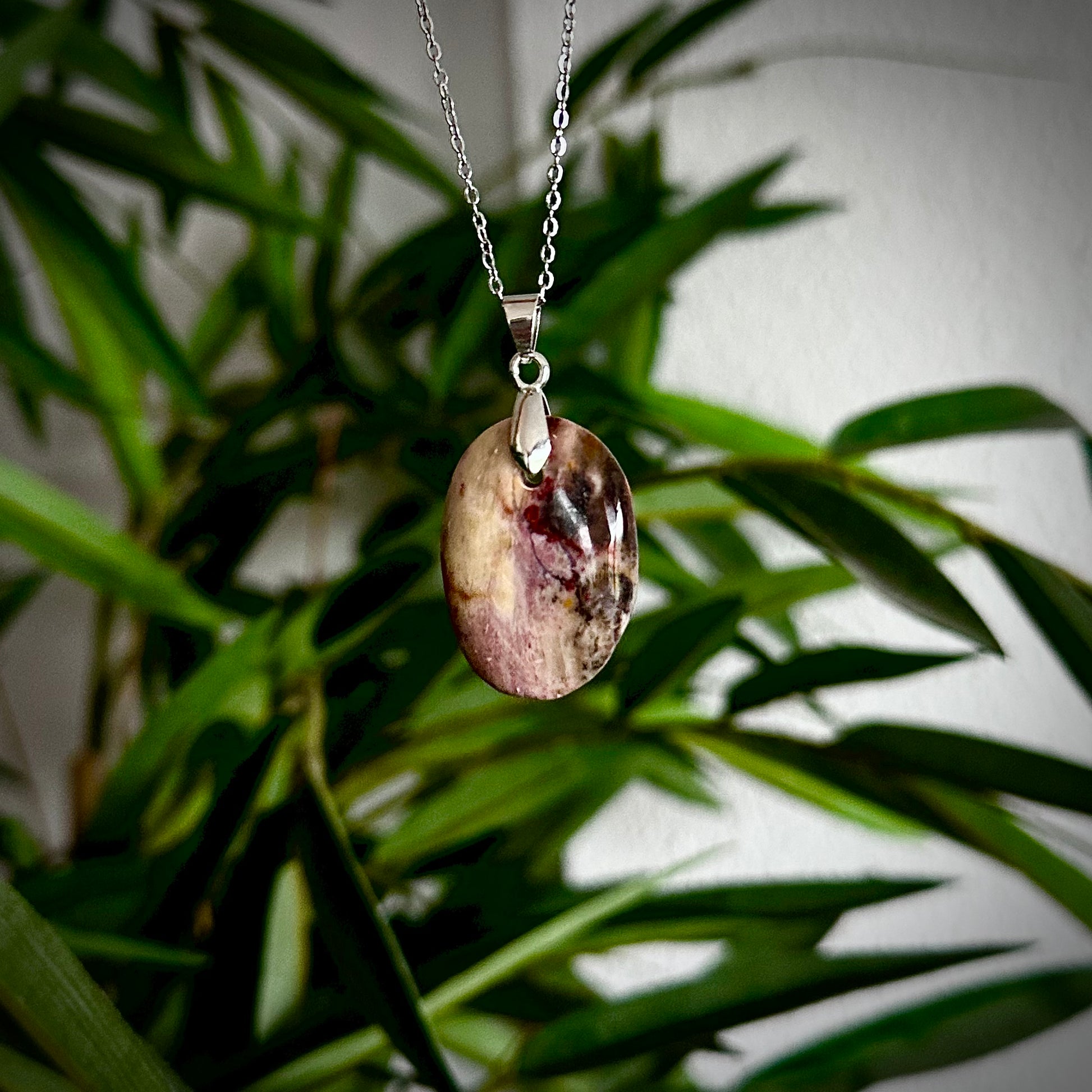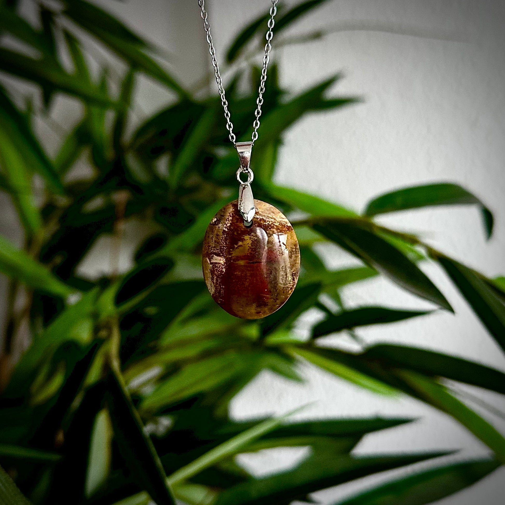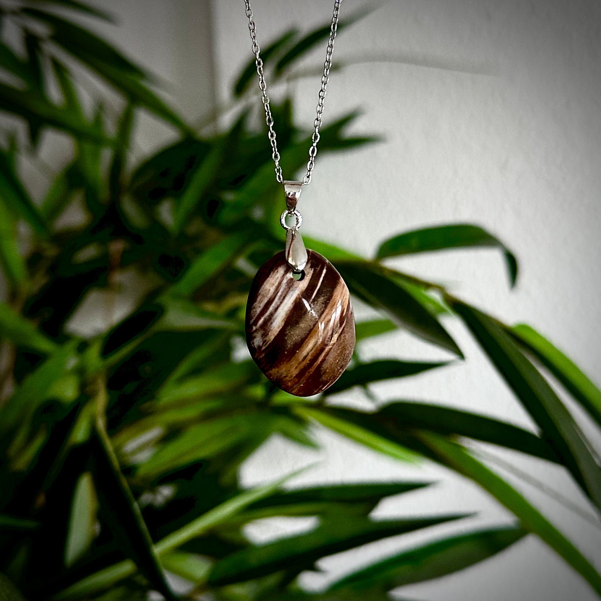 Versteend hout kettinghangers met een zilverkleurig hangertje.